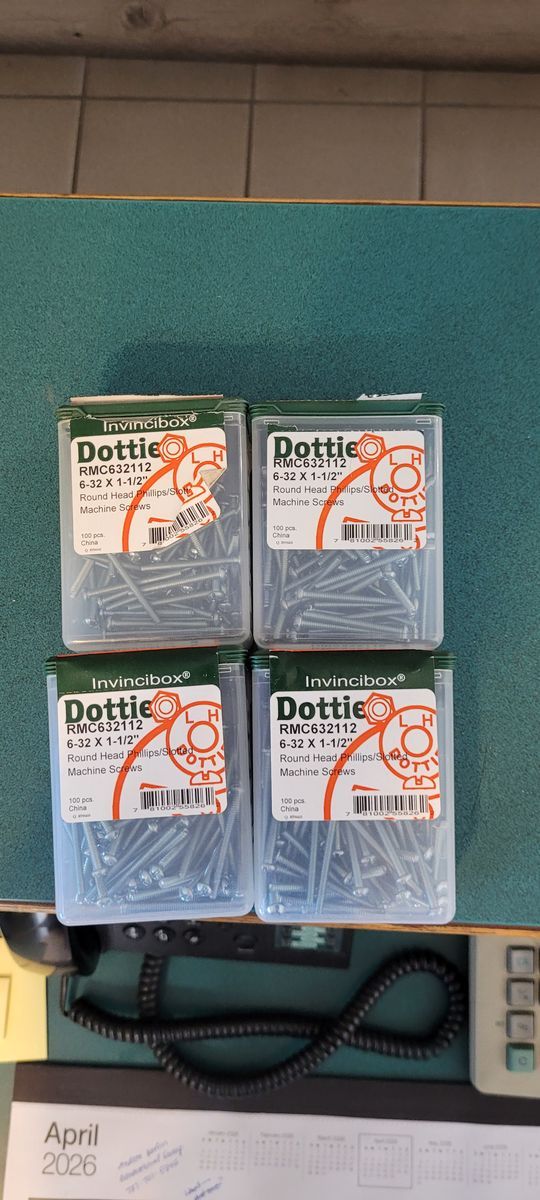 Dimensions: #6-32 thread size and 1-1/2 inch length