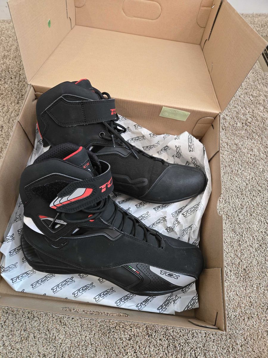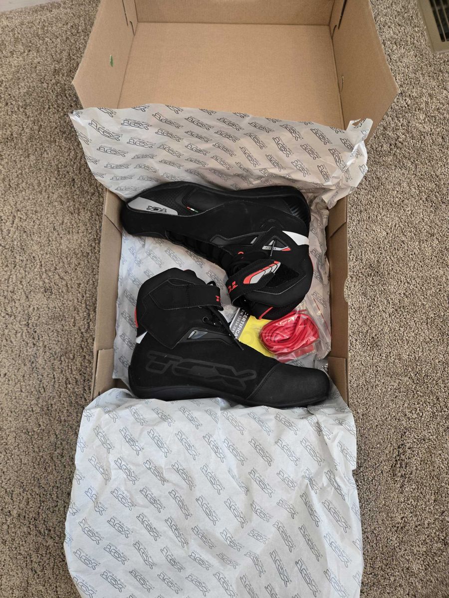 VenmoWomens motorcyle boots, size US 9, EU 43. Lightly used, only worn a few times. Come in original box and extra red laces.