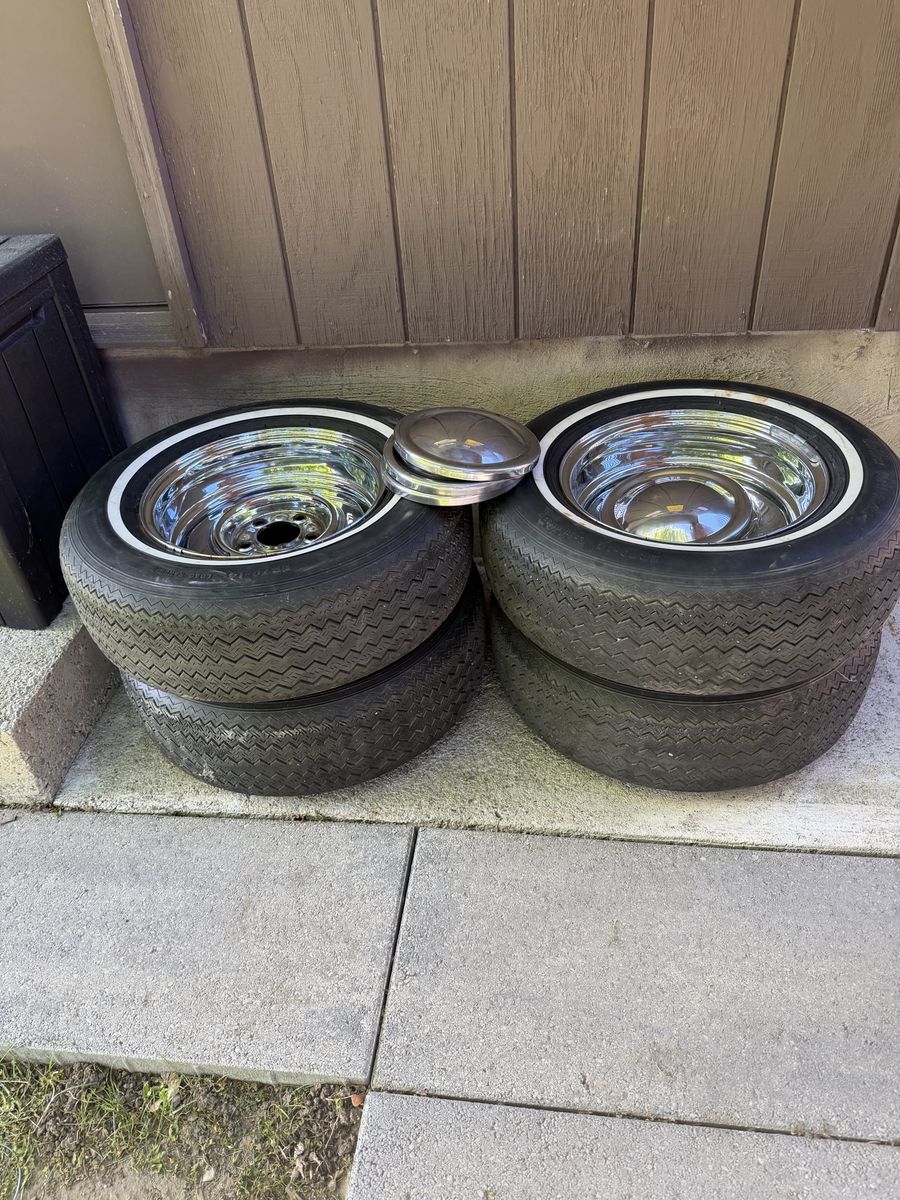 VenmoER70/14 tires with Crome rims and baby moon hub caps came off 63 ford