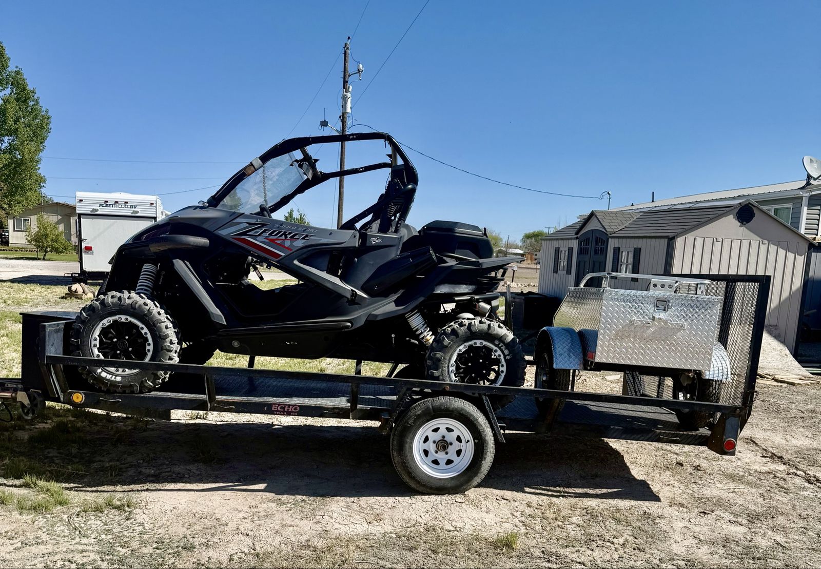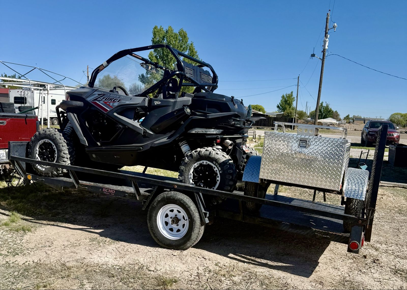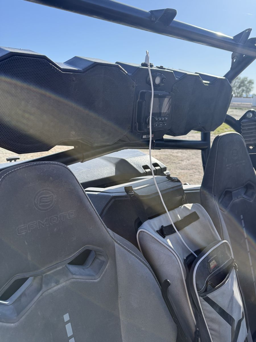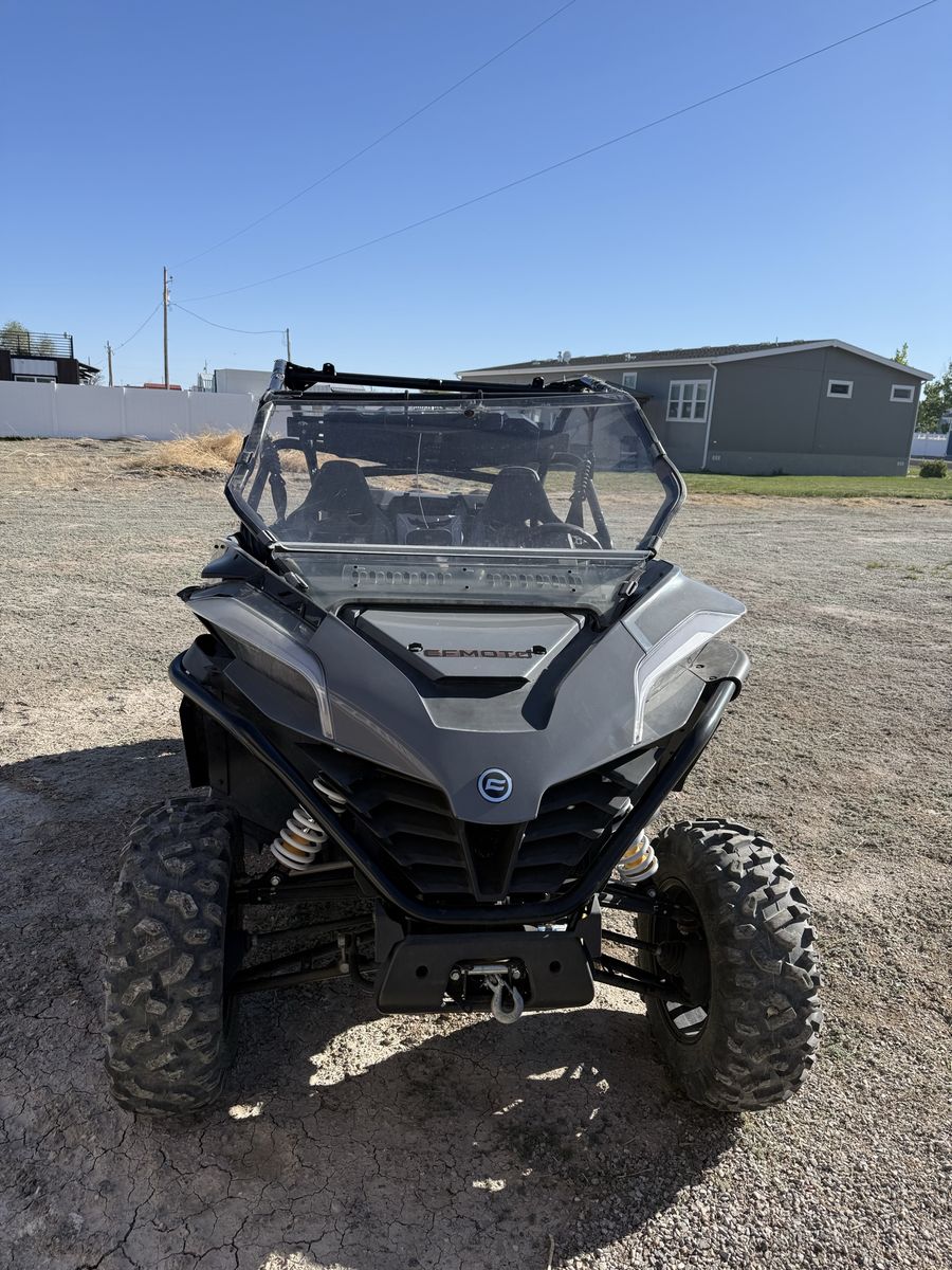 Selling it all! 2022 CF Moto Z-Force 950 Bluetooth Stereo Windshield Storage Box Storage Bags 7x15 trailer with storage box New tires 4x6 silver atv/motorcycle trailer Perfect for hauling camping equipment Behind the ATV Text me for more info