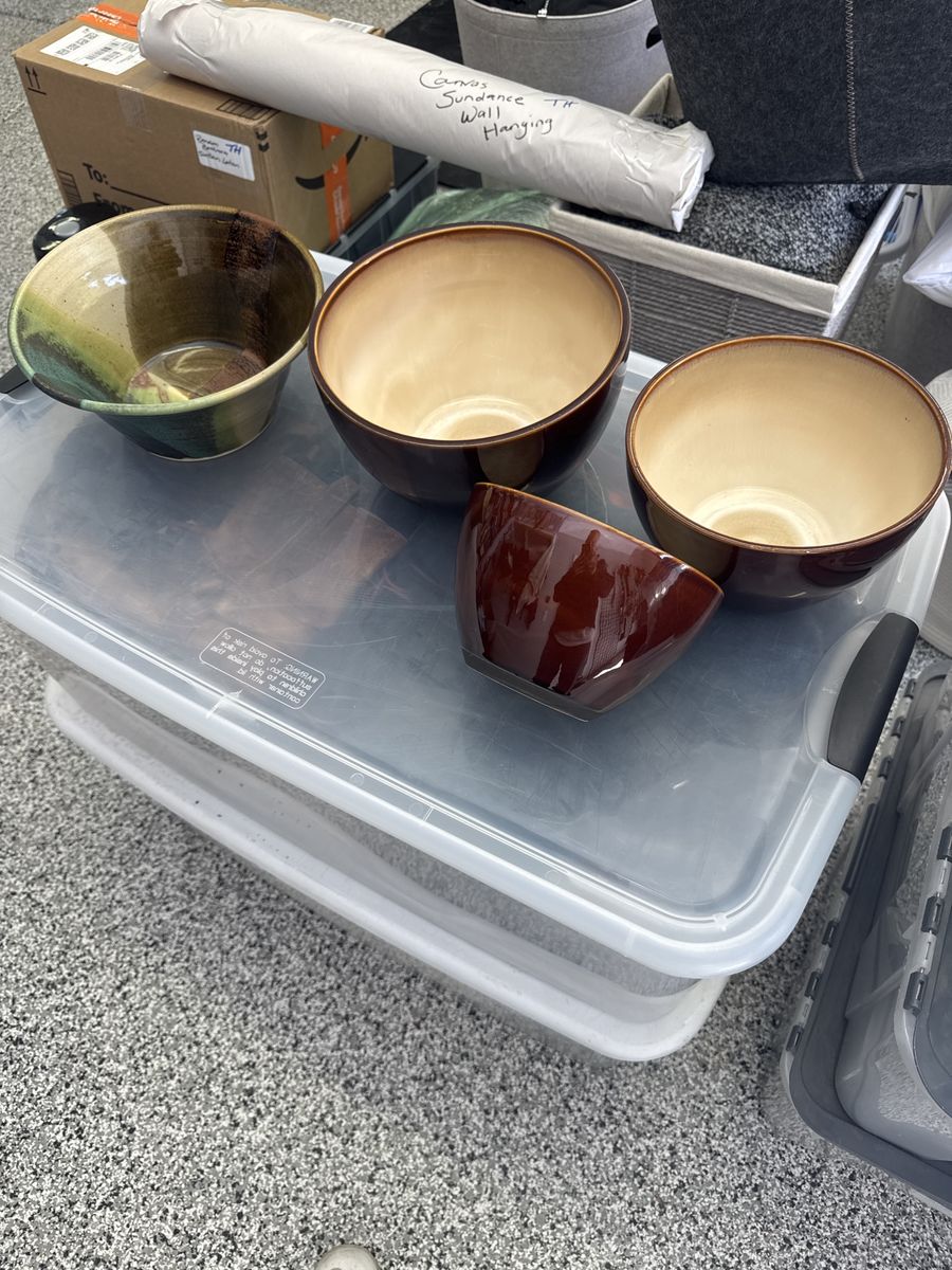 ZelleCeramic Serving Bowls. Quantity 4. (1) 7” diameter; (1) 8” diameter; (1) 9” diameter and (1) 10” diameter. Set is $25.00