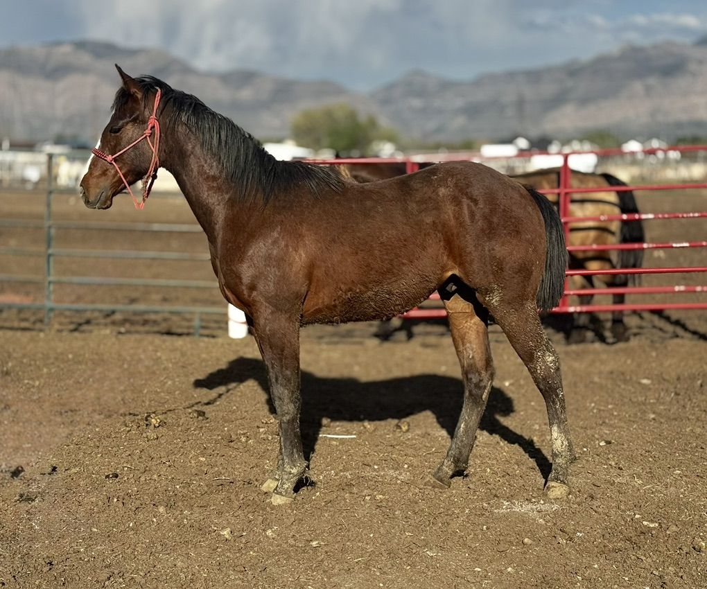 Fire is a coming 2 year old (born Dec 2024) quarter horse colt, he is currently standing 14 ish hands, and growing like a weed. This is going to be a big colt! He is straight legged and sound, never been lame or had any injuries. Fire’s parents are both proven producers, this colt has a ton of potential to go any direction. He is built just as wide as he is tall, he is extremely athletic, everything you want in a barrel or rope prospect! Fire is currently only halter broke, he will lead well, he loads, and he can tie all day. We are working with him everyday, and will continue to until he is sold. Fire is the ultimate performance prospect, and will make someone a solid athlete.