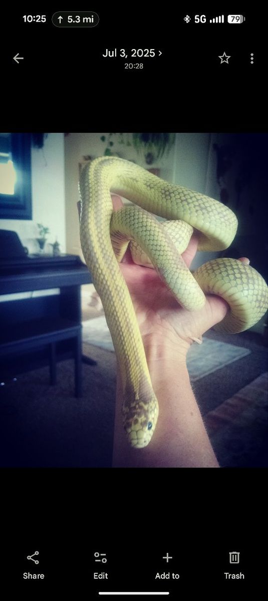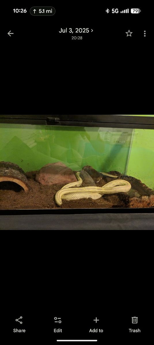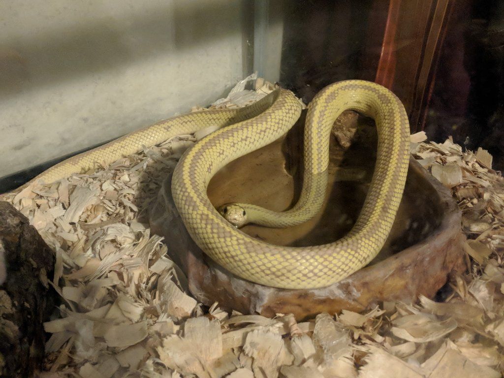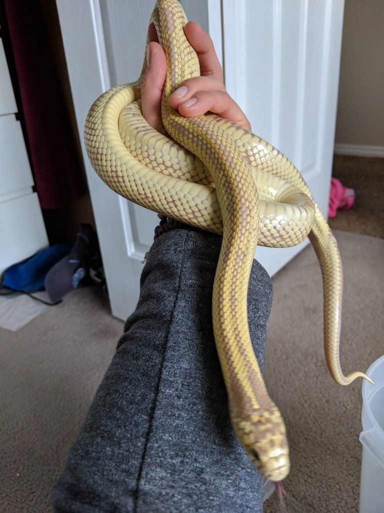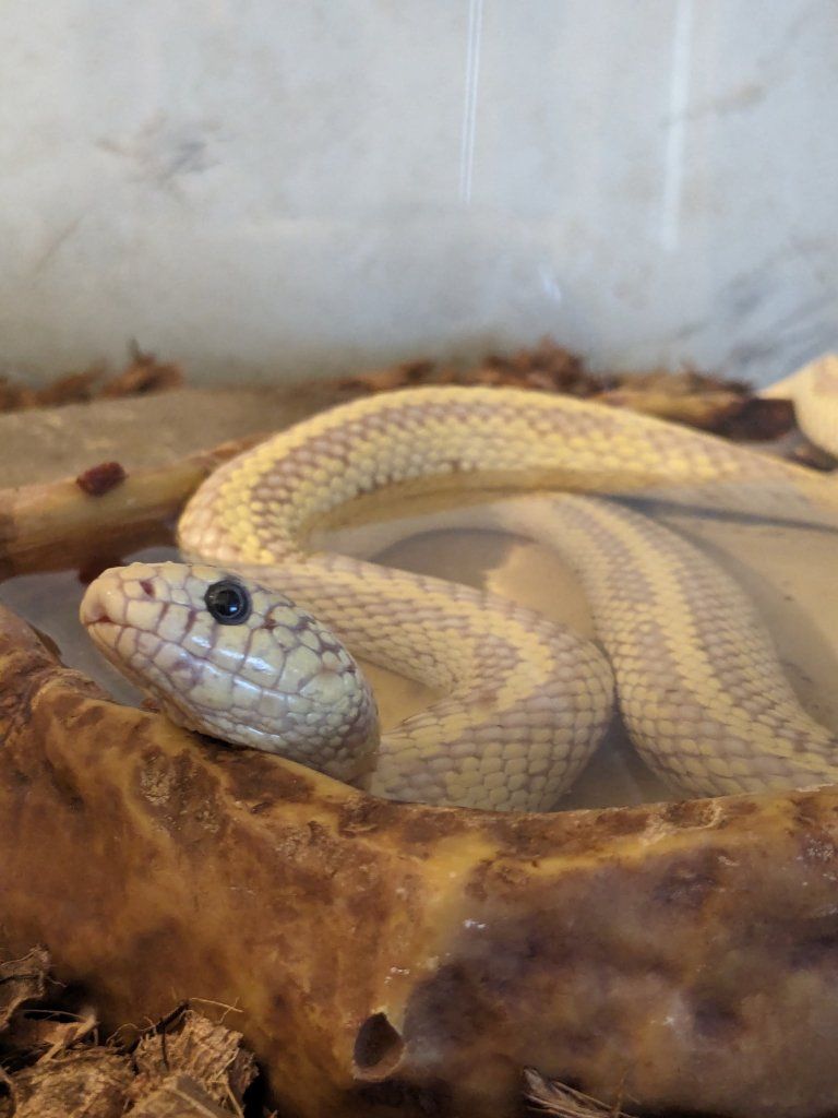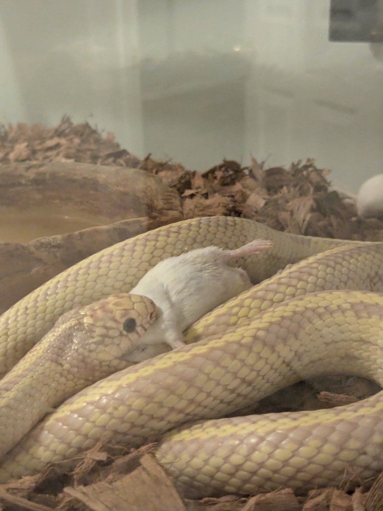 Roughly 15 year old male kingsnake. He's about 5 feet long! it takes him a bit to get used to you holding him. Feeds regularly and is active.