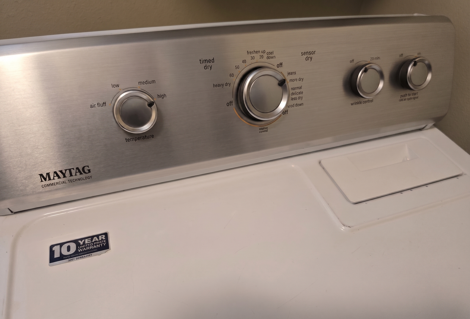 This is a solid, no-frills dryer built with Maytag Commercial Technology—meaning it’s designed to last and handle heavy use.