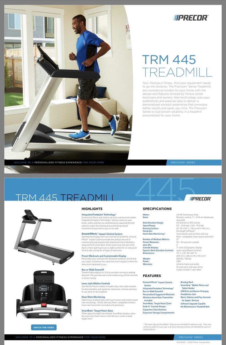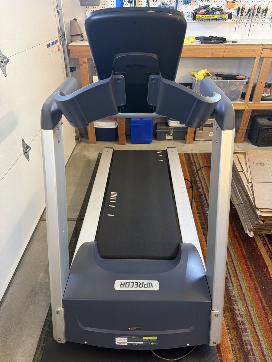ZelleI purchased this Precor treadmill new February 2016. I’ve had it routinely maintained from Justin at Advanced Fitness Repair (801-836-9259). It has 5,615 miles on it. The motor, deck and belt were all replaced in the last couple of years and light usage since then. The belt is a commercial belt with 30,000 mile life and ~ 28,000 miles remaining. The model comparable to this is the Precor TRM 631 which sells for $7,985. The deck has little wear and can still be flipped in a few thousand miles as needed. This treadmill weighs 358 lbs all assembled. I’m moving to Florida and won’t need it there. This treadmill has been indoors in my basement. It was taken apart and moved to my garage as we prepared to move. Justin came 4/15/26 and put it all back together and ensured everything is in great condition. It's best to have a trailer and two people to pick this up. Reach out with any questions.