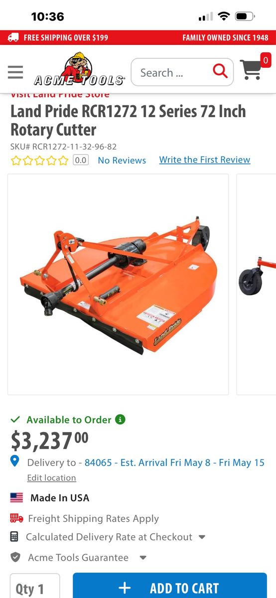 This is the landspride 6’ wide rotary mower. It has been around the pasture 1 time. Perfect condition, like new. $1800