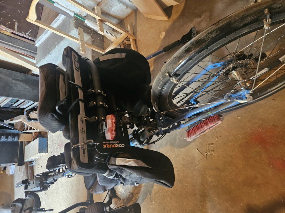 this is my father's trike that he got from the VA and never used it is a high quality bike with Shimano parts. this is a $3,000 bike and custom built trailer hitch.