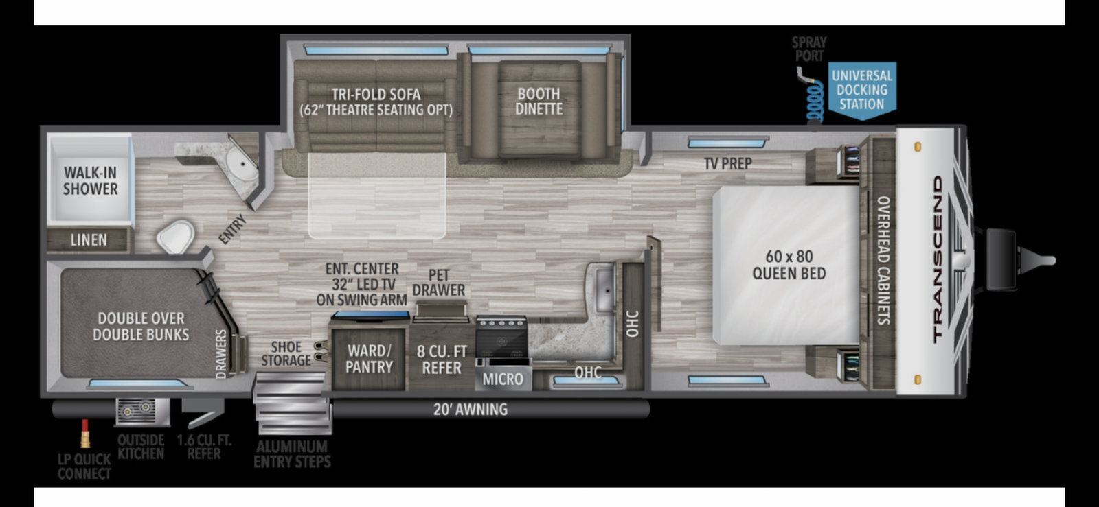 Venmo$20,000 OBO. 2020 Transcend by Grand Design. Only used a few times. Sleeps up to 10 with pull out couch, double bunk bed, queen size master with privacy door. Outdoor kitchen and T.v. Exterior has protective coating from dealer but has some fading.