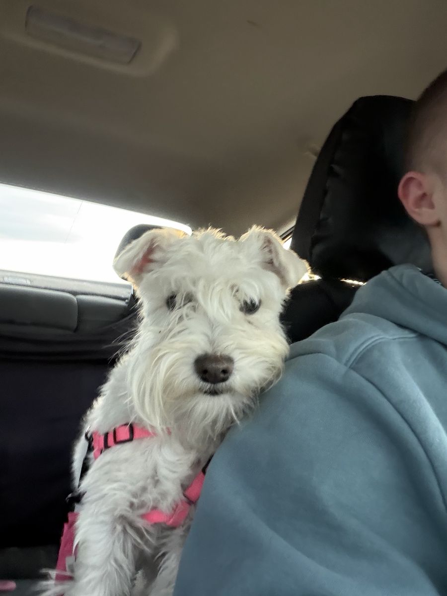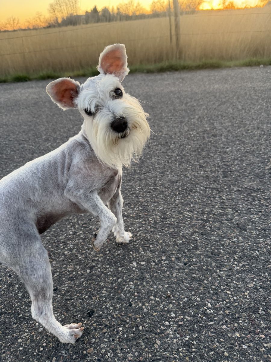 ApplePayThis goofy girl is a 10 month old mini schnauzer. She weighs 7 lbs and is so full of personality. She is purebred and did have registration papers but I cannot get ahold of her breeder so they can send me a replacement. She is very sweet and loving. She loves to go on adventures and does so well in the car. She is house trained, crate trained, leash trained, and knows basic commands. She has been embark dna health tested and is clear of 273 different genetic conditions. She has had a first heat that just ended but will be required to be spayed. She gets along with dogs, cats, and kids. Her favorite pastime is chasing the rabbits on our farm. She is fully up to date on vaccines and had a vet checkup in January.