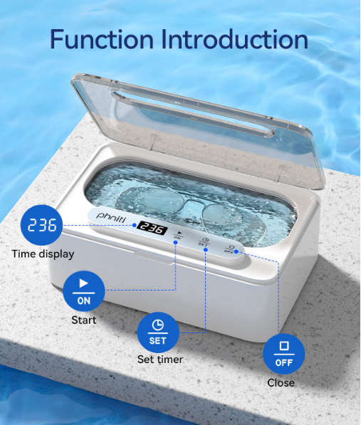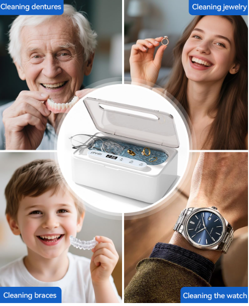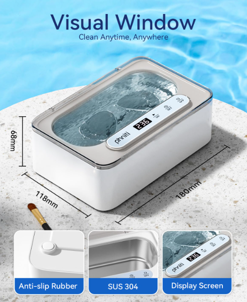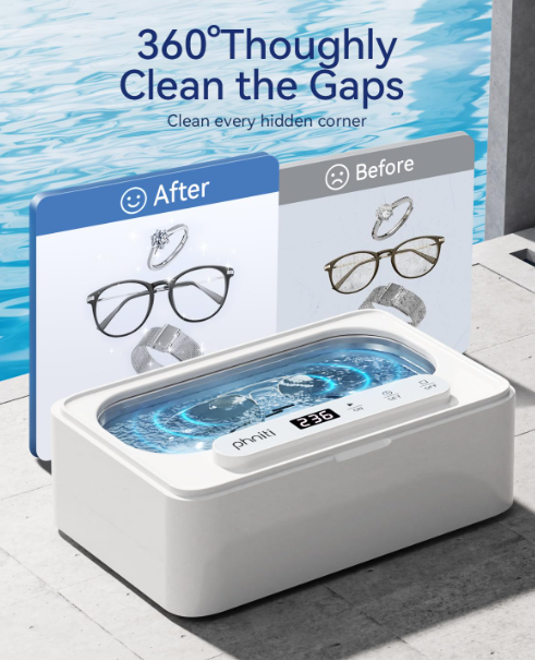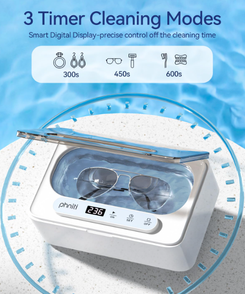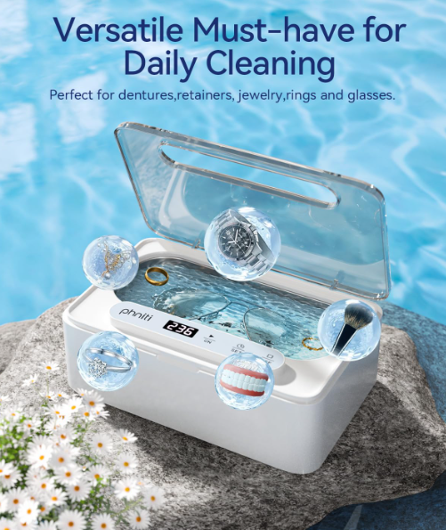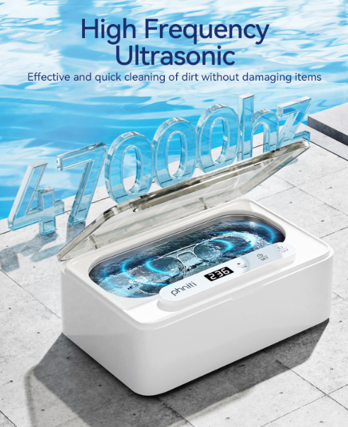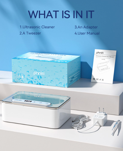 Zelle47kHz High-Frequency Ultrasonic CleaningPhniti Ultrasonic cleaner generated millions of energetic micro-bubbles and intense impact energy. Using only tap water, it effortlessly removes stubborn dirt from retainers, jewelry, glasses and dentures. See stubborn stains vanish from your dentures as ultrasonic waves frequency.