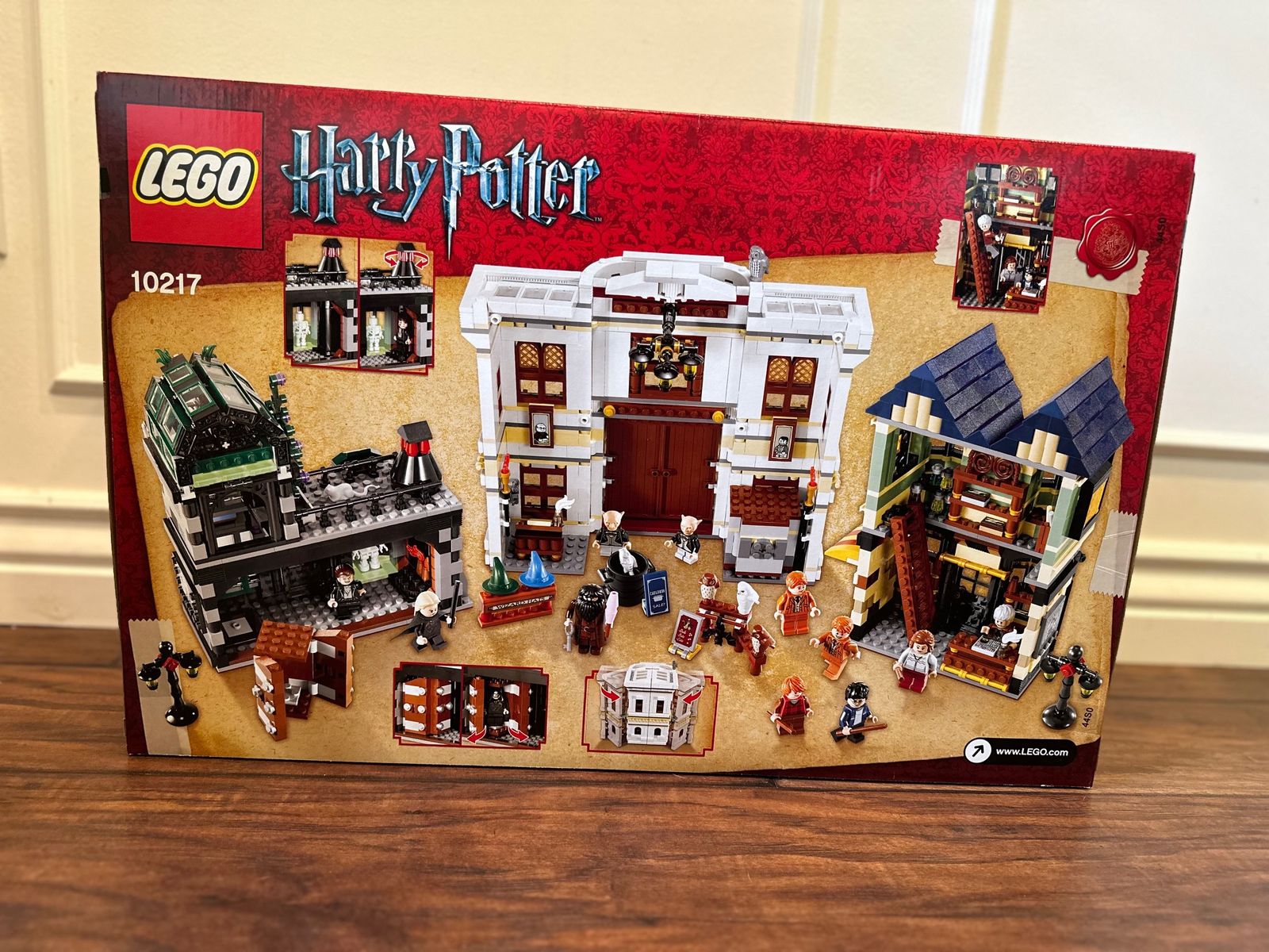 ZelleThe LEGO Harry Potter set 10217, Diagon Alley, is a highly sought-after collectible that was released in 2011. This set features 2025 pieces to build the iconic Diagon Alley from the Harry Potter series. With intricate details and a large scale, this set is designed for ages 14 and up, making it a challenging yet rewarding build for adult fans of the franchise. The set includes multiple minifigures and accessory pieces to bring the world of Harry Potter to life in a physical form.