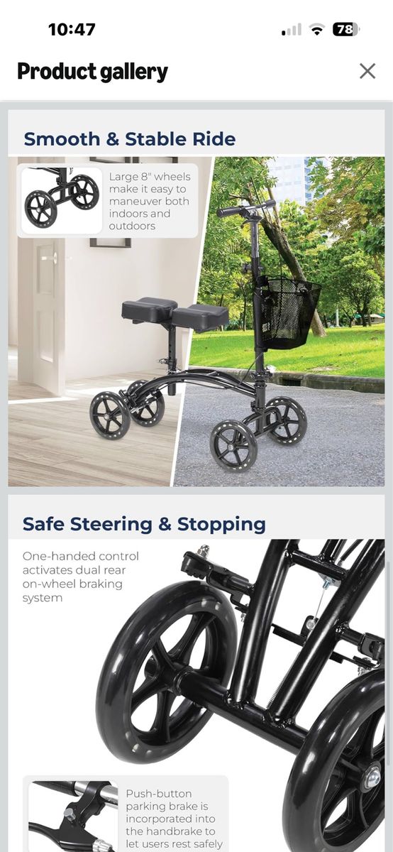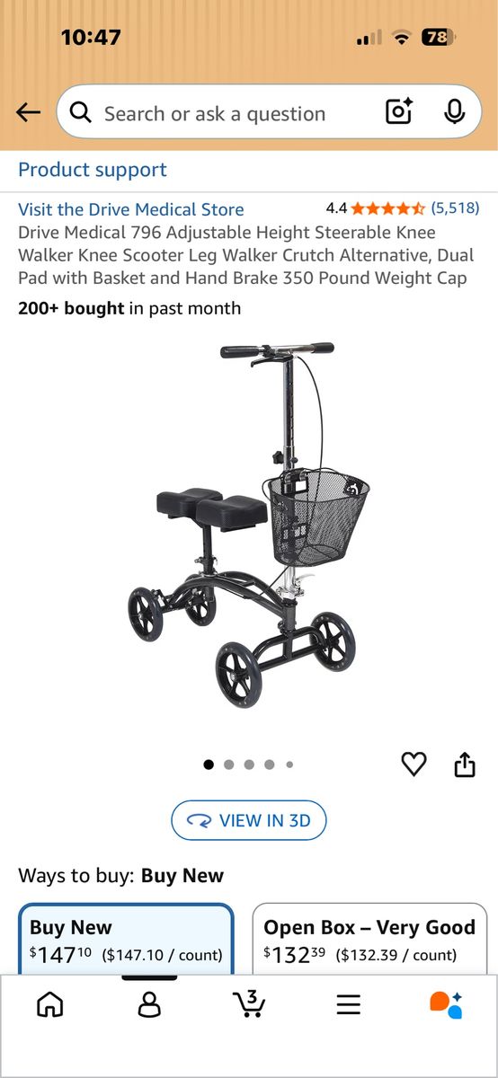 VenmoDrive Medical 796 Adjustable Height Steerable Knee Walker Knee Scooter Leg Walker Crutch Alternative, Dual Pad with Basket and Hand Brake 350 Pound Weight Cap. Vive pad added to the knee seat for extra comfort.