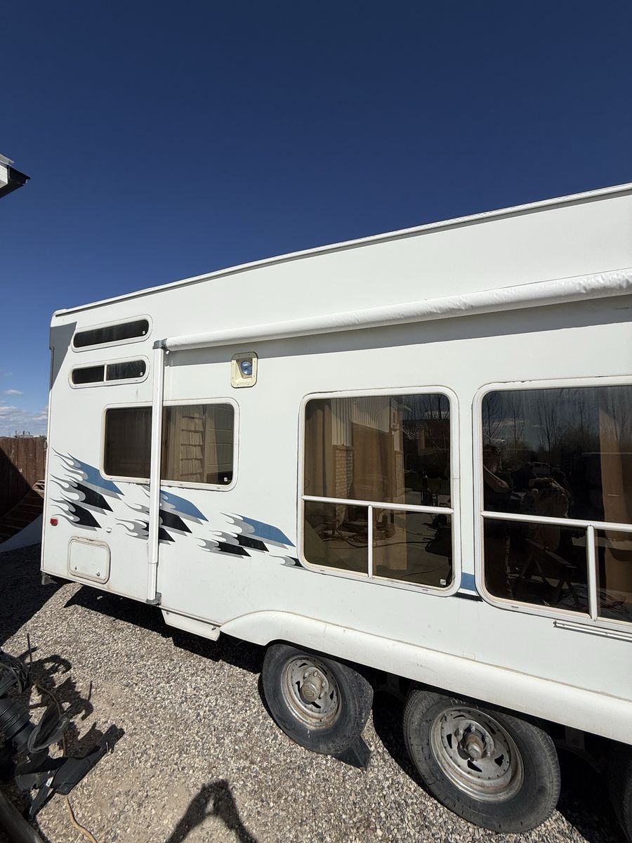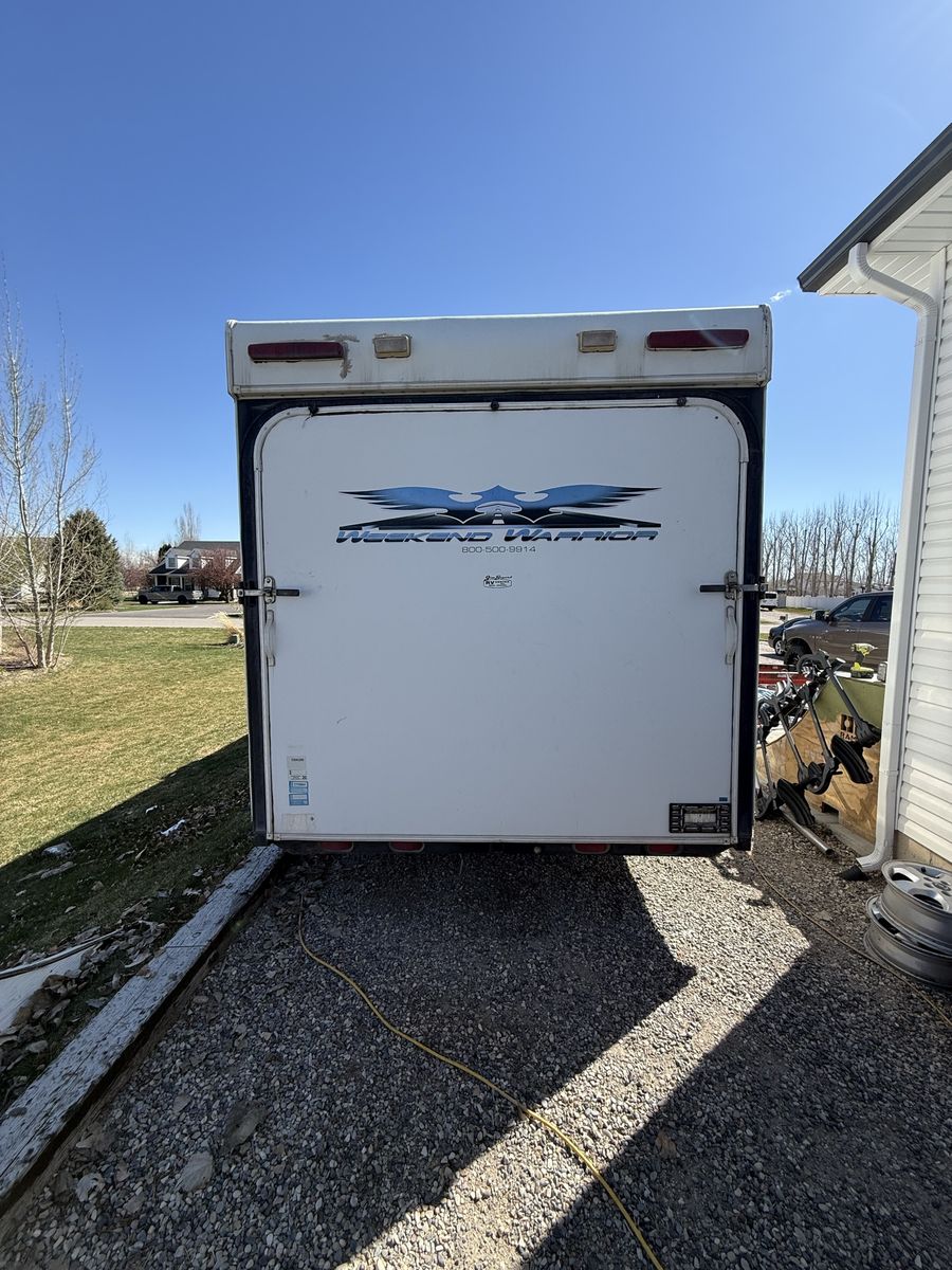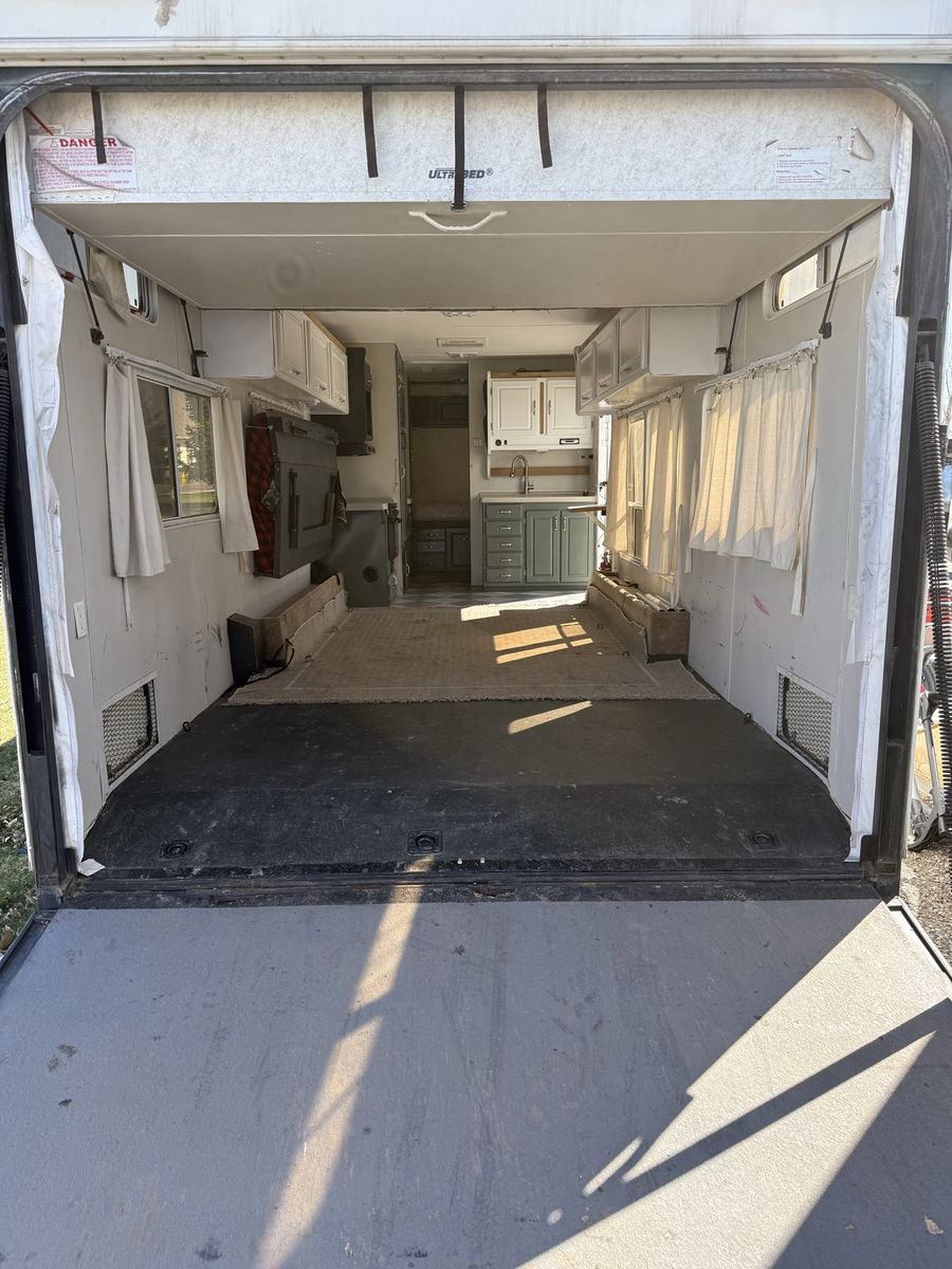 This bumper pull toy hauler has been awesome for our family and has never let us down. Tons of room for toys and everything works as it should. I just filled it up with dirt bikes and quads but this would be perfect for a big 4 seat side by side. It has an electric jack, newer water heater good tires, new spare, new warning, huge water tanks for the long trips and it pulls really well. The previous owner removed the generator so it doesn’t have an on board generator but it does still have the fuel station. It had a small leak at one point but I replaced everything that had gotten wet and redid the roof 2 years ago and have never seen a drop of water since.