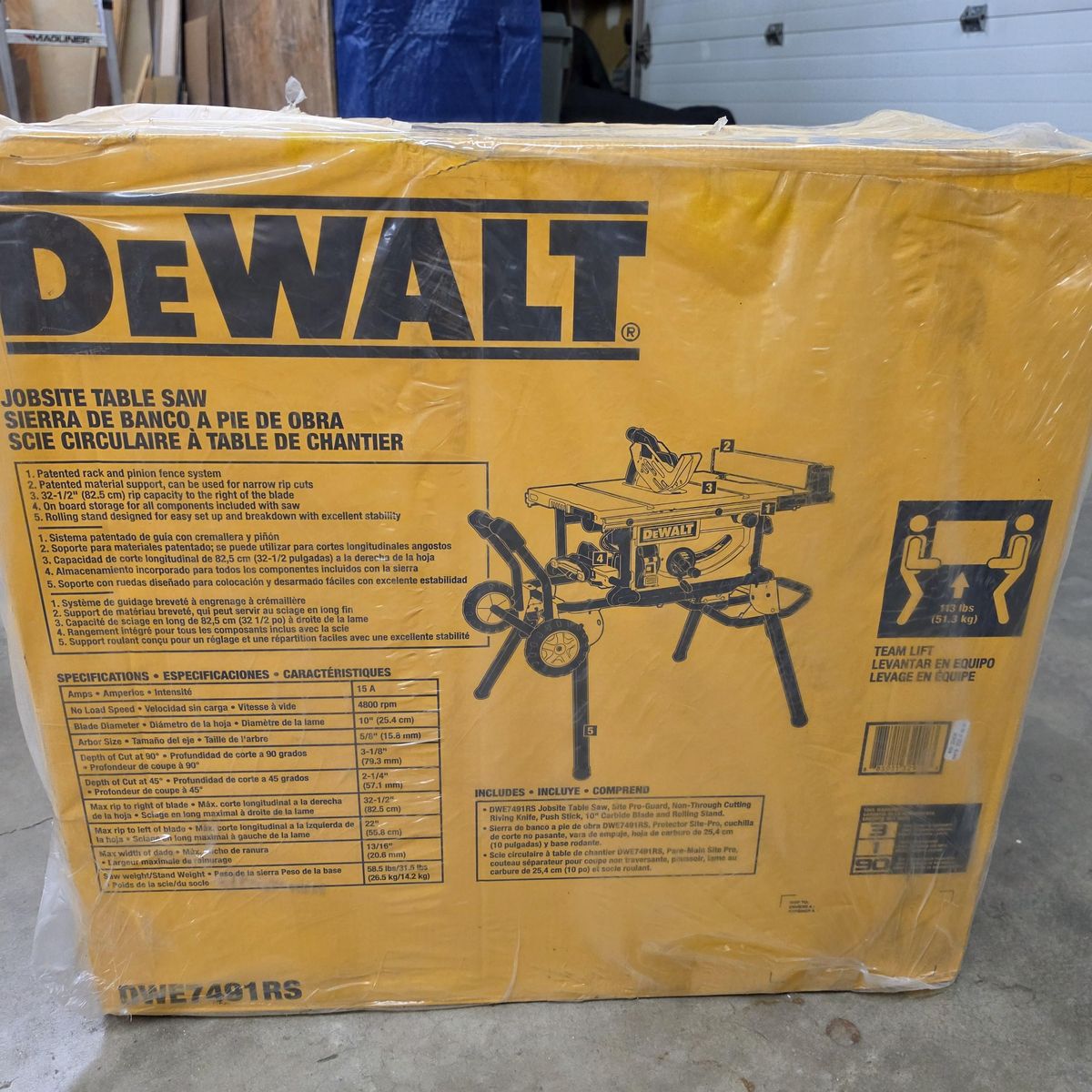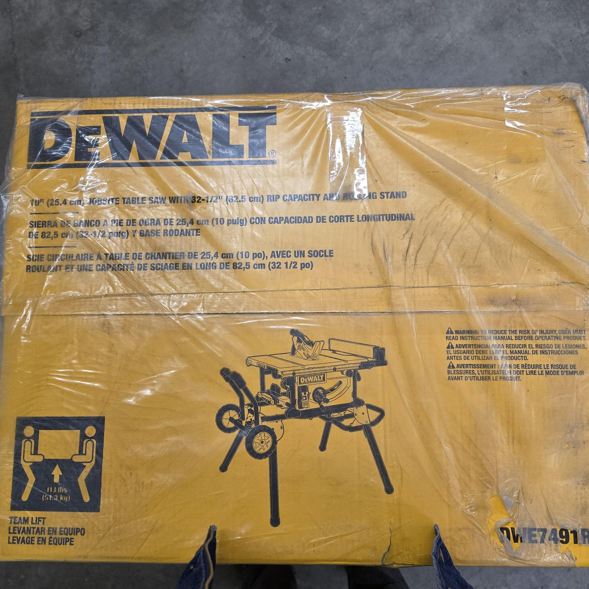 Dewalt 10" Jobsite Table Saw with Rolling Stand - Model DWE7491RS, new in box, never opened. 32-1/2" rip capacity.