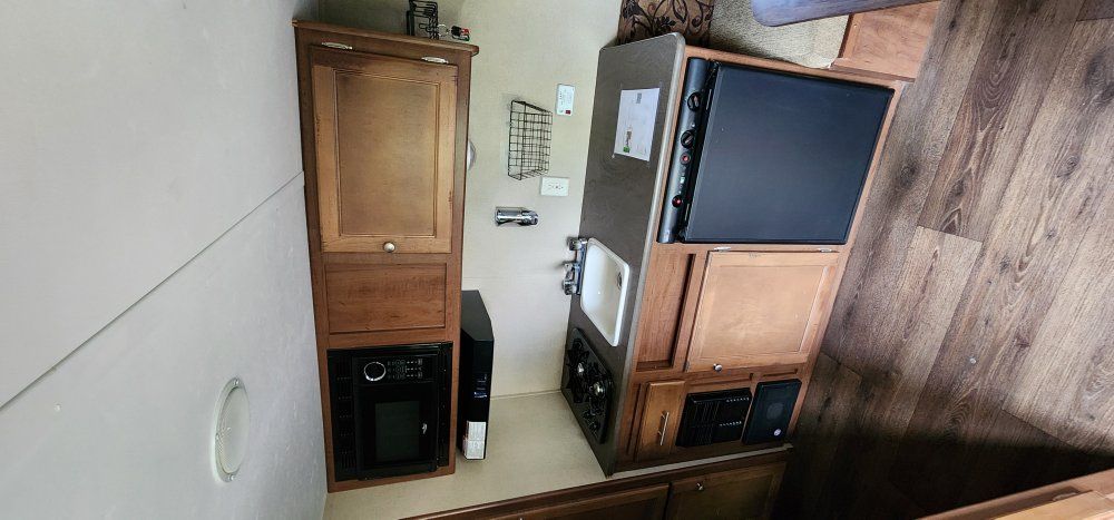 Specs: Dry weight 2,975lbs Total length 18'9" Sleeps 4 Fresh water 20 gal Gray tank 28 gal Black tank 28 gal