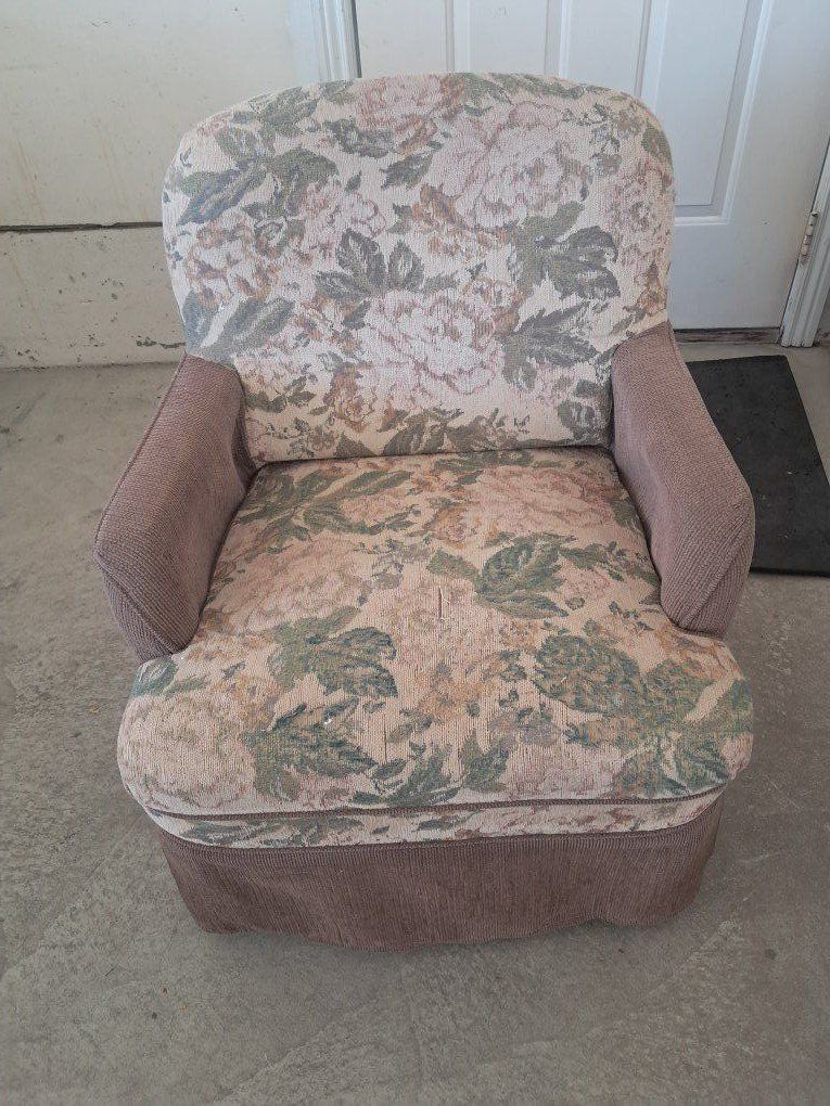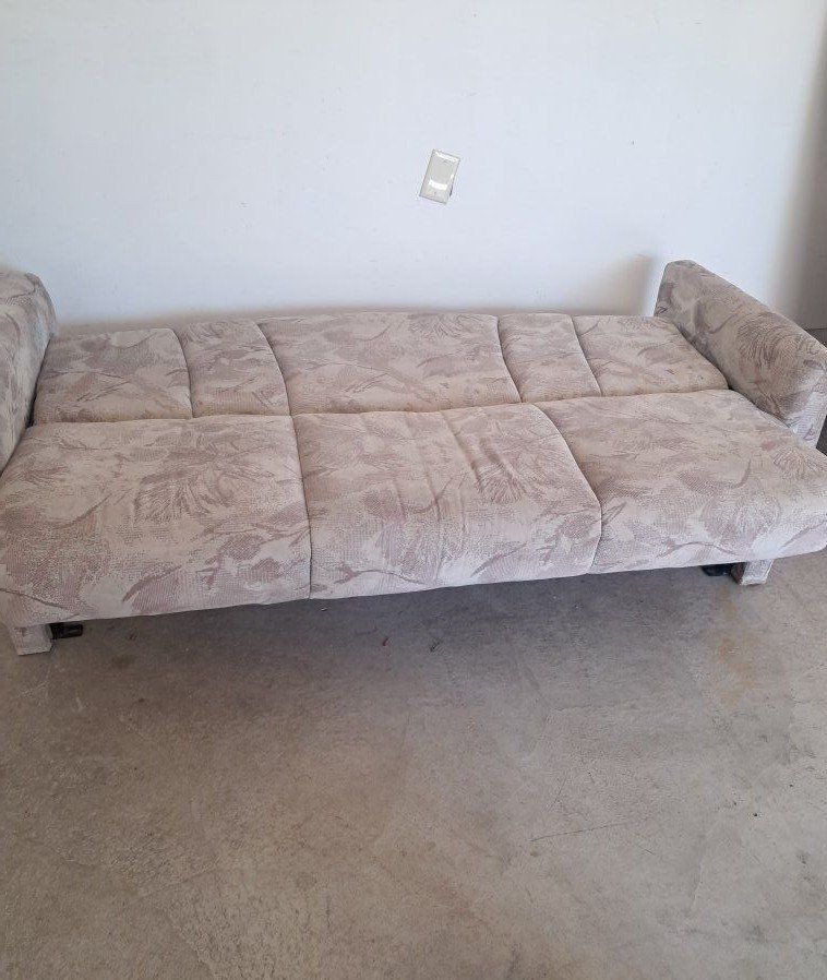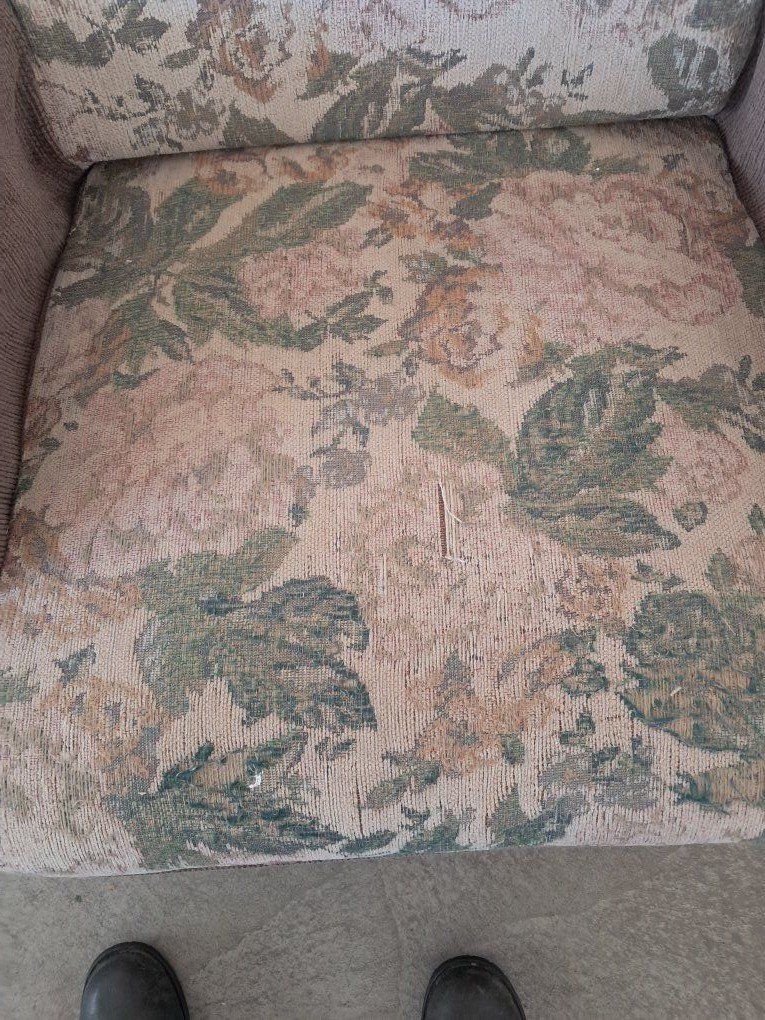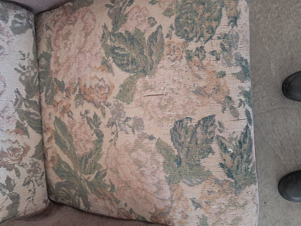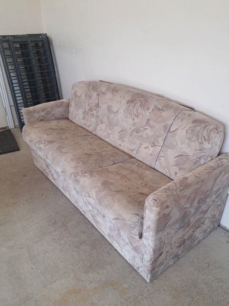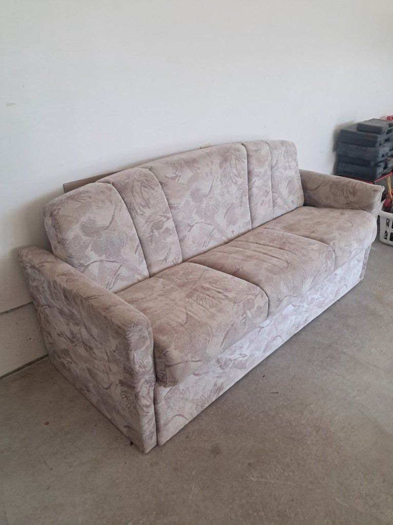 Jackknifet couch that came out of an RV. no rips tears or even worn out spots. could use a cleaning. Functions properly. The chair has a small rip. Both for $50