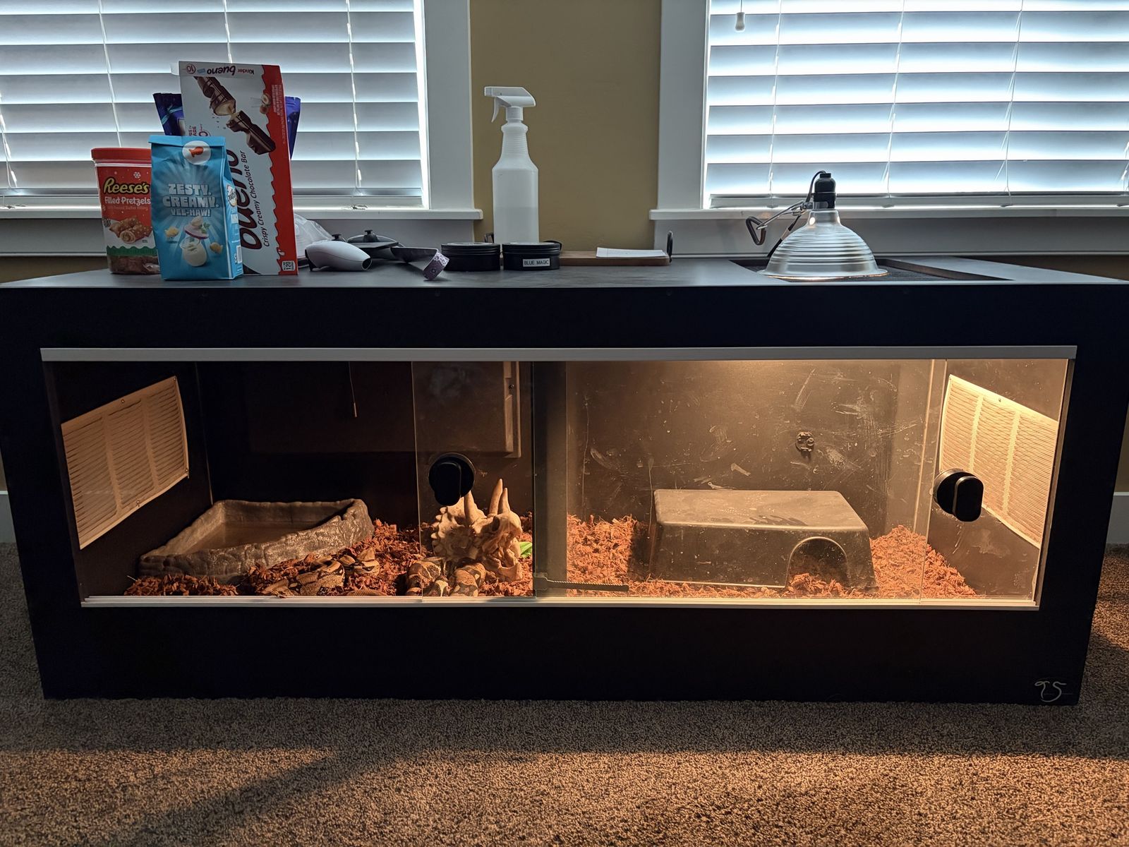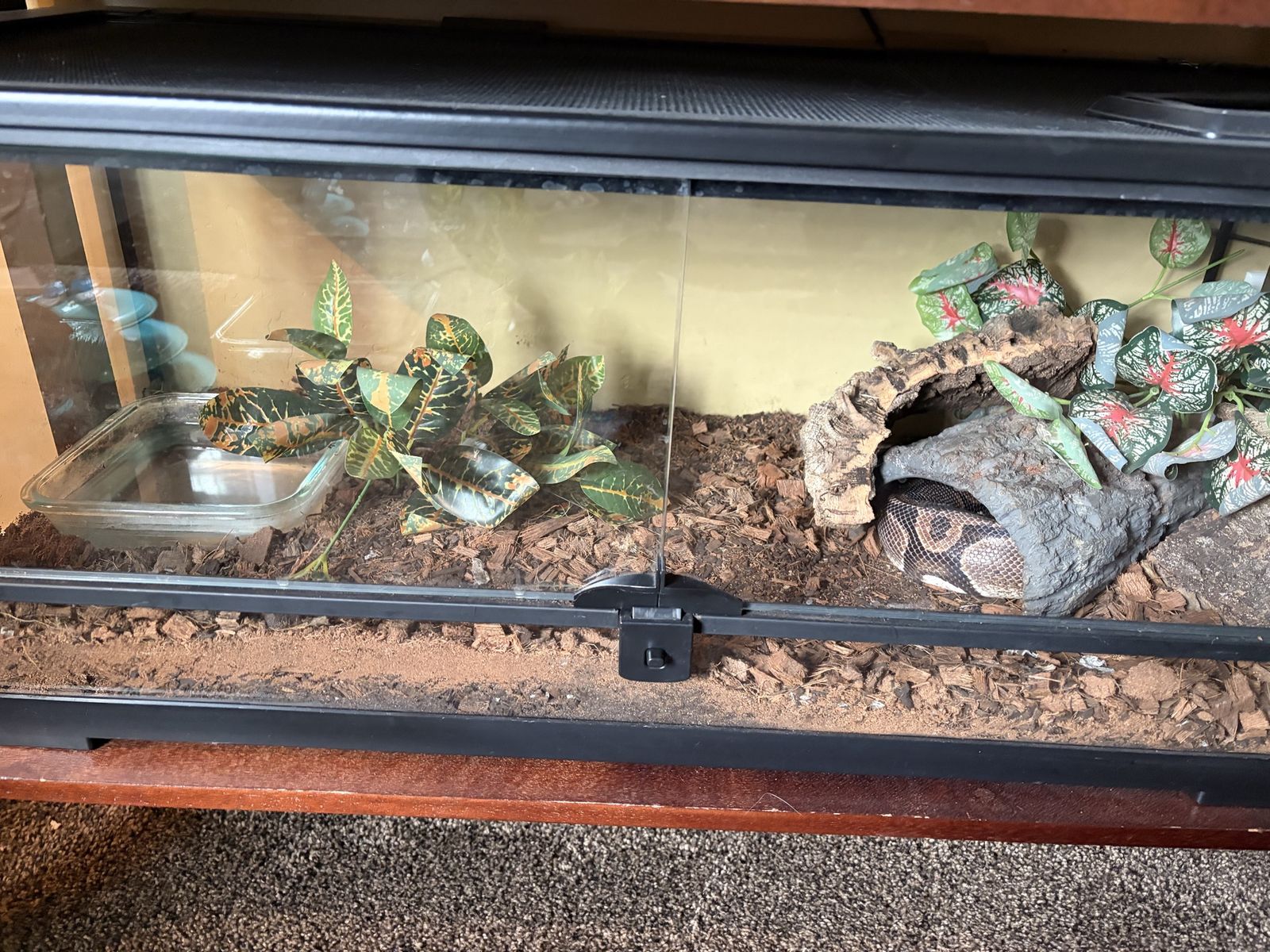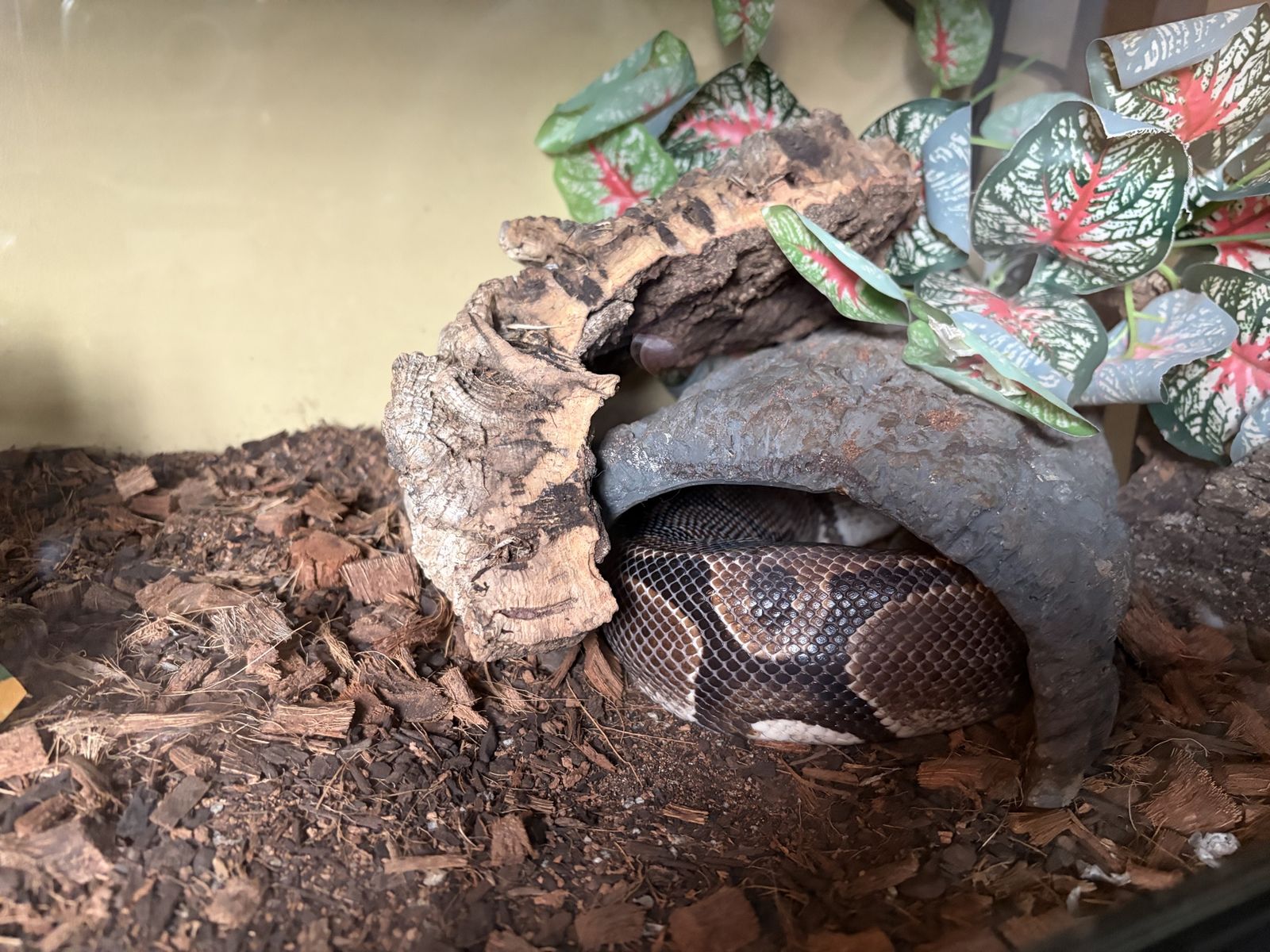 i’ve got a baby on the way and i’m sadly having to down size my collection, i’ve got a tiger reticulated python, a black pinstripe and a white pinstripe ball python, two normal ball pythons and a cinnamon white ball python and a fully grown killer bee ball pythons. i have a normal red tail boa and a the lighter one in pictures is an ivory boa im pretty sure. all snakes will come with enclosure all eat amazing frozen thawed and all have amazing temperaments. will be asking more for the boas with there enclosure. enclosure was 800$ alone. Retic tiger - 500 white and black pinstripes are 250 each regular ball pythons are 100 each white cinnamon is 200 asking 800 for the two boas and enclosure asking 300 for my killer bee only females i have are the lighter colored boa and full grown killer bee ball python reach out with any questions