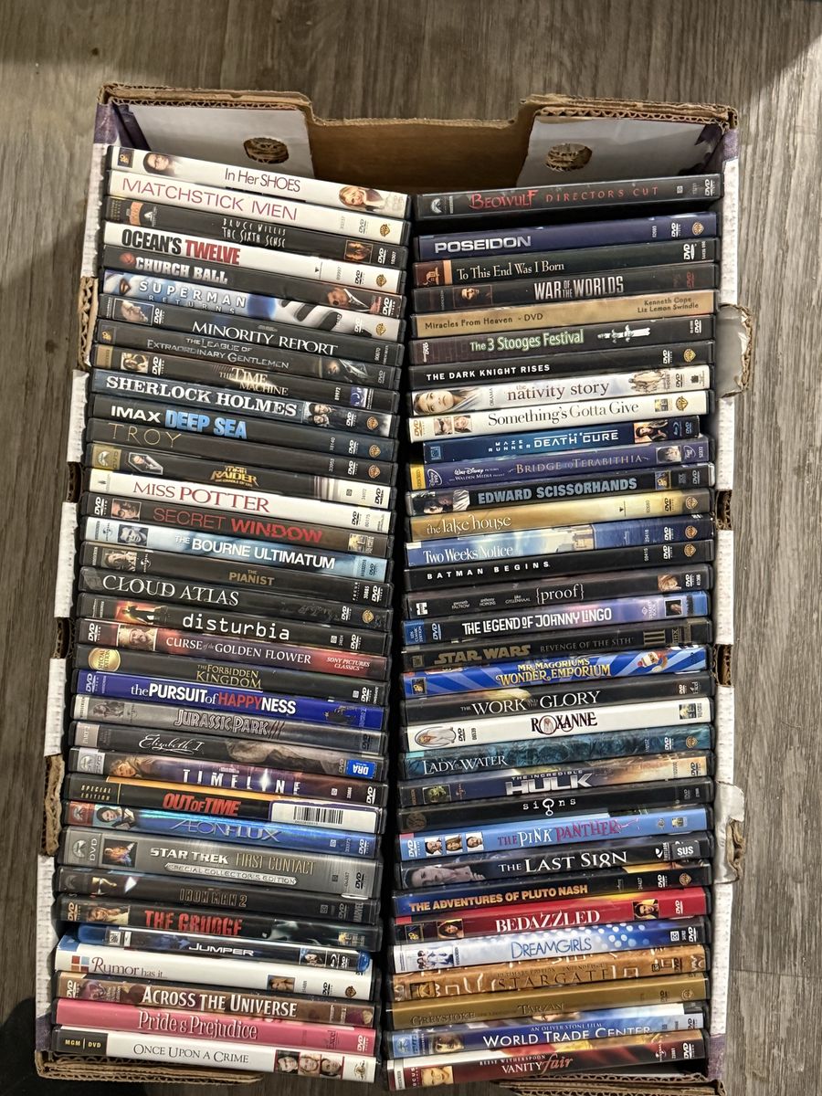 ApplePayHave over 218 dvds and blue rays for sale. Prefer to sell all at once as a package deal. . I believe there are 218 videos . These would be great for someone that doesn't want to pay for cable or at a cabin or vacation spot . There are pictures showing every dvd and blue ray. To time consuming to list them all by title . Just zoom in on the pictures to see them . Some are more sought after than others . Some are probably collector items as well. Asking $75 or best offer . Or sell 5 at time for $4 a piece . Text Chris 8017590452 See Less