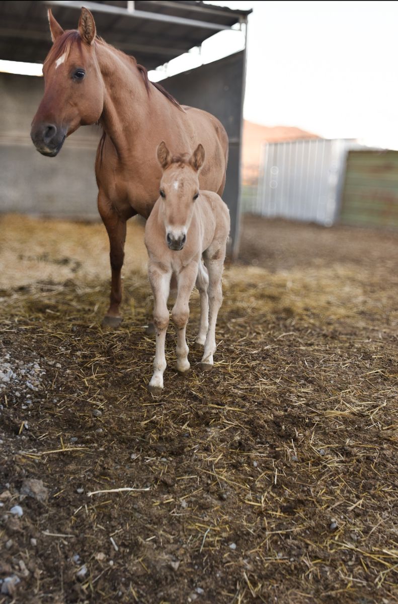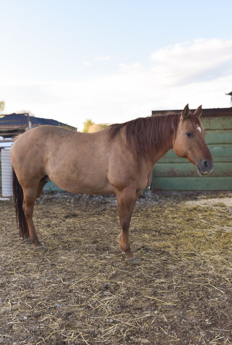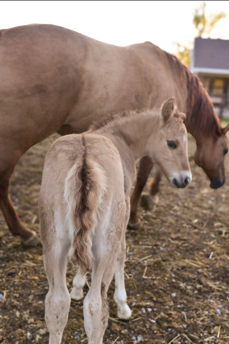 PayPalMeet Ditto , he was born April 18th he is out of our AQHA mare “poco Comet Chex” and by our Percheron / Belgian stallion “spur” he is a red dun which is how he got his name of ditto because he is the splitting image of his mother . He will be available at weaning . A payment program can be set up but he will have to be paid in full before leaving our place .