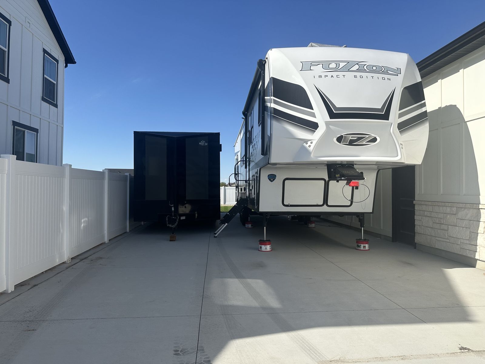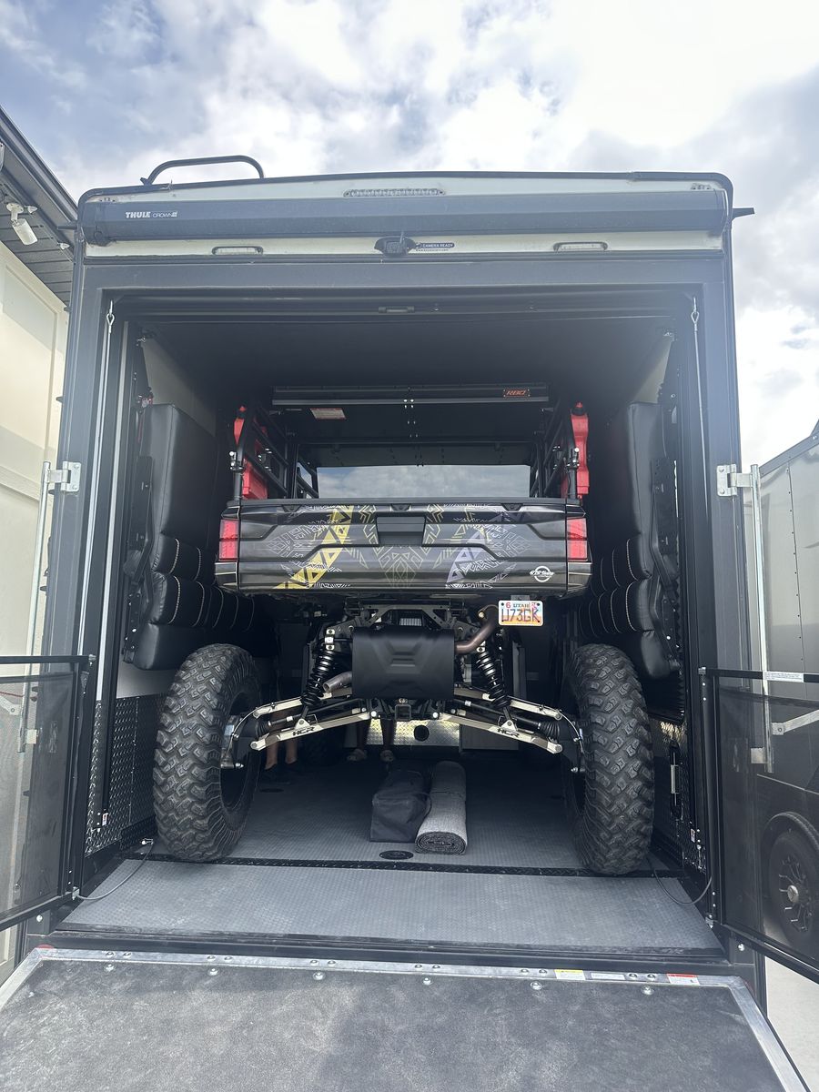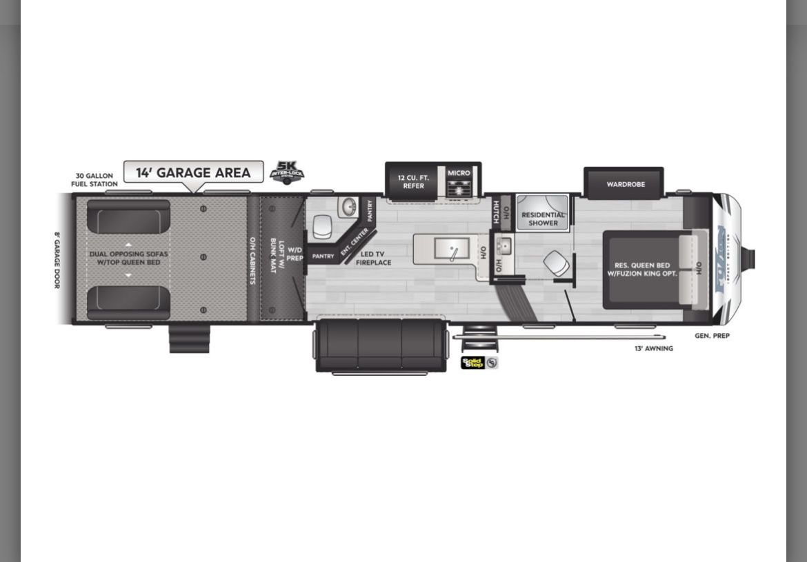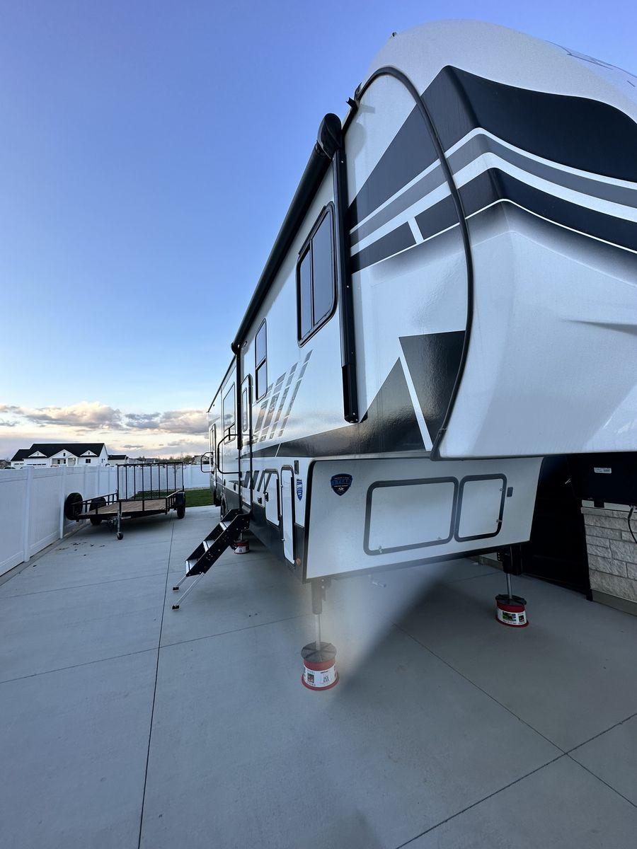 Up for sale is a 2022 keystone Fuzion Impact 367 in excellent shape! Basically brand new with upgrades such as diamond plate in garage, residential faucets and backsplash. We’ve used this coach a total of 5 times since we bought it new end on 2022. Generator has 50 hours on it. Why pay thousands more at the dealership with all the fees when you can have this and save some cash. Has a 14ft garage. Will fit a 4 seater Canam and 4 seat RZR turbo s with room to spare. We are selling it because it doesn’t get used as planned. You will not be disappointed with this trailer! Comes with transferable warranty, good til 2028 It’s in pristine condition. Come check it out for yourself, you will see that it’s basically new. Call or text with any questions. You will not be disappointed.