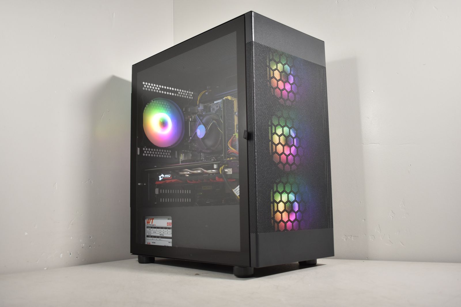 Case: Sama ARGB Tempered Glass Case! This case comes with 4x ARGB Fans. All ARGB is synced and controlled with a button on the top of the case with many many different lighting modes!