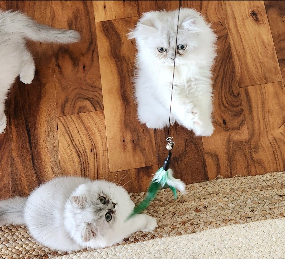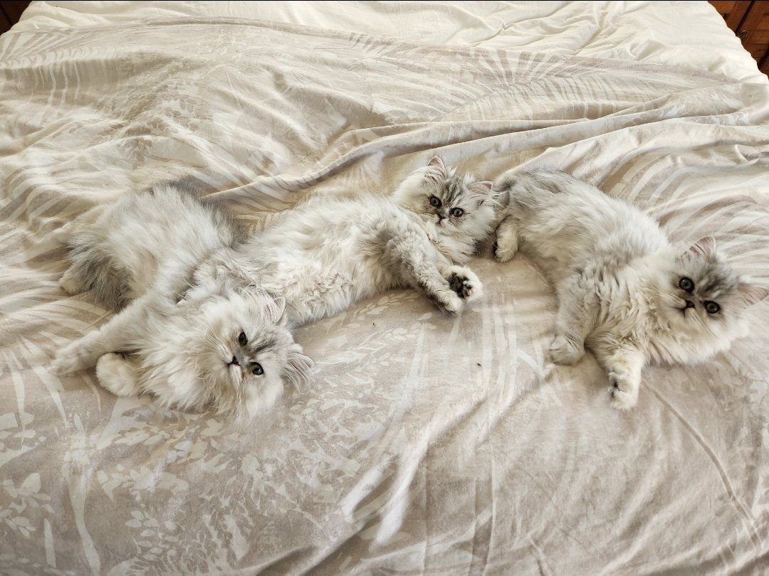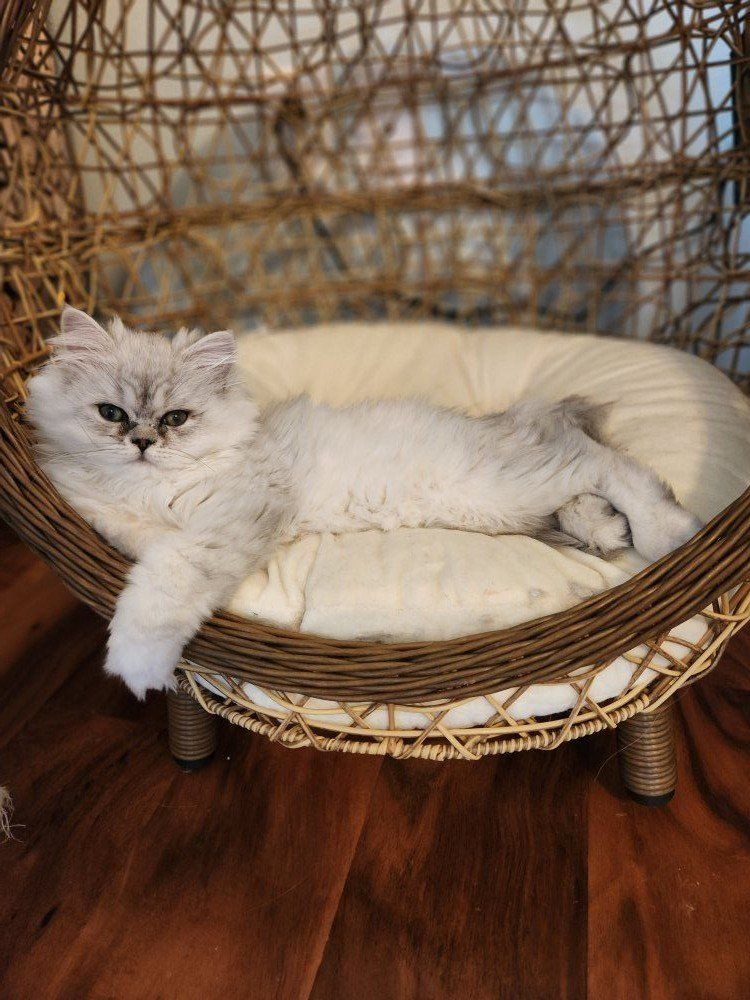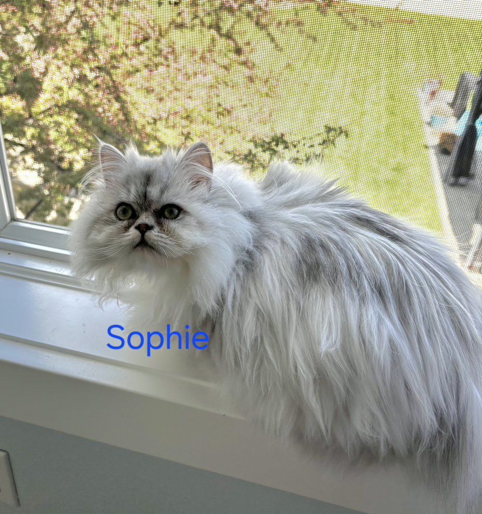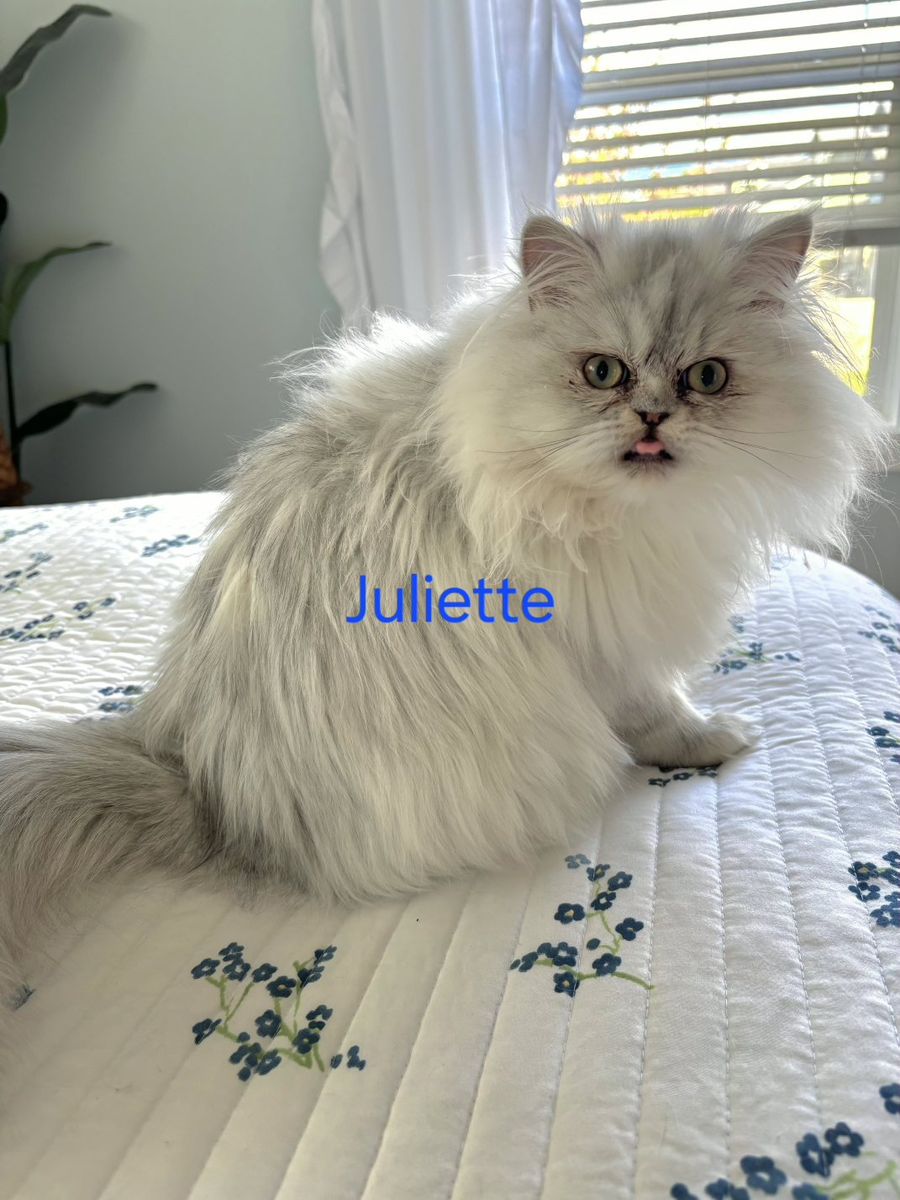 ZelleTwo 6 month old kittens available for their new forever homes, both little girls. We call them Sophie and Juliette but you can choose whatever name you like! Litter trained, loving, and exceptionally beautiful. Both have green eyes and the special chinchilla black "eyeliner". Raised with lots of love in a clean home. Going home care package included.