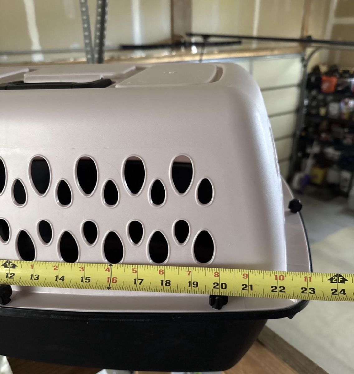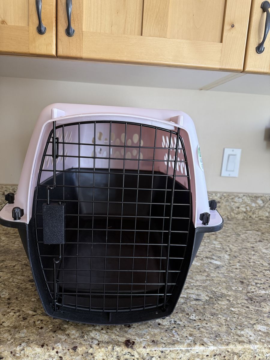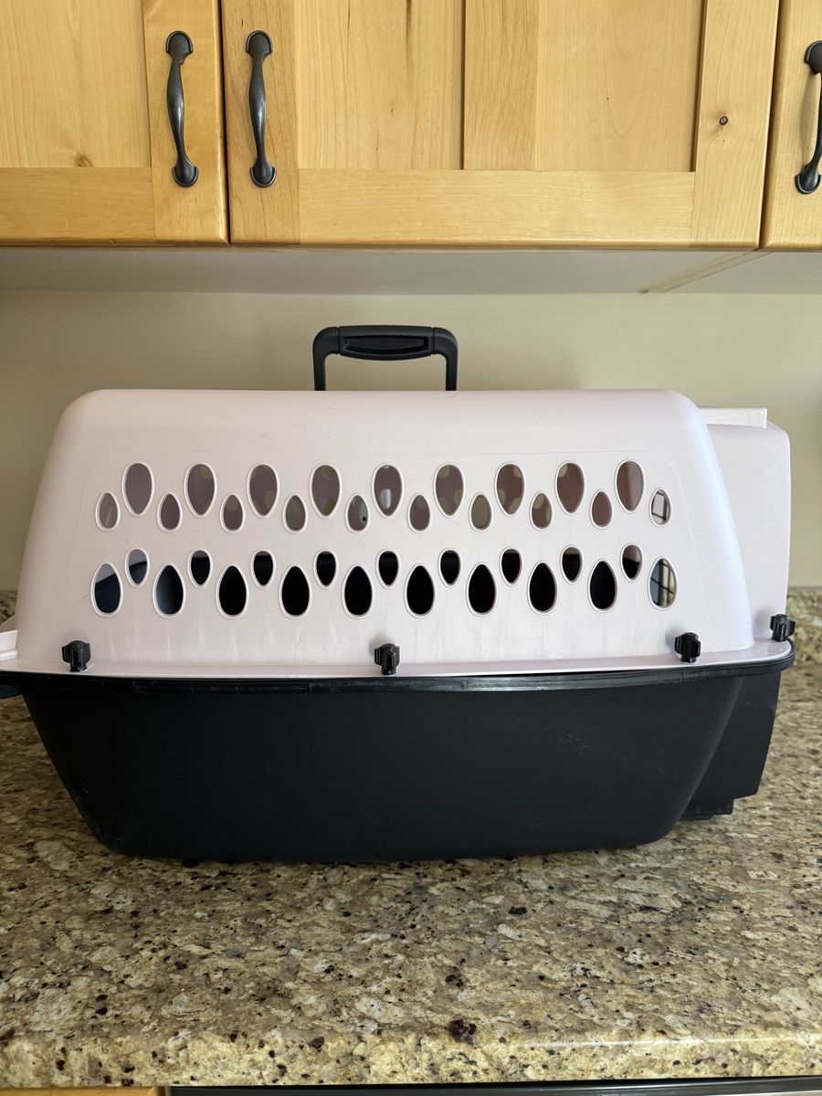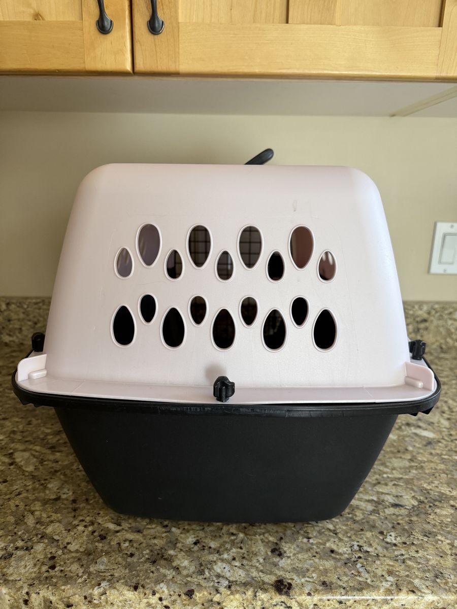 Gently used pet carrier with metal door. Clean and in great condition. Perfect for cats or small dogs.