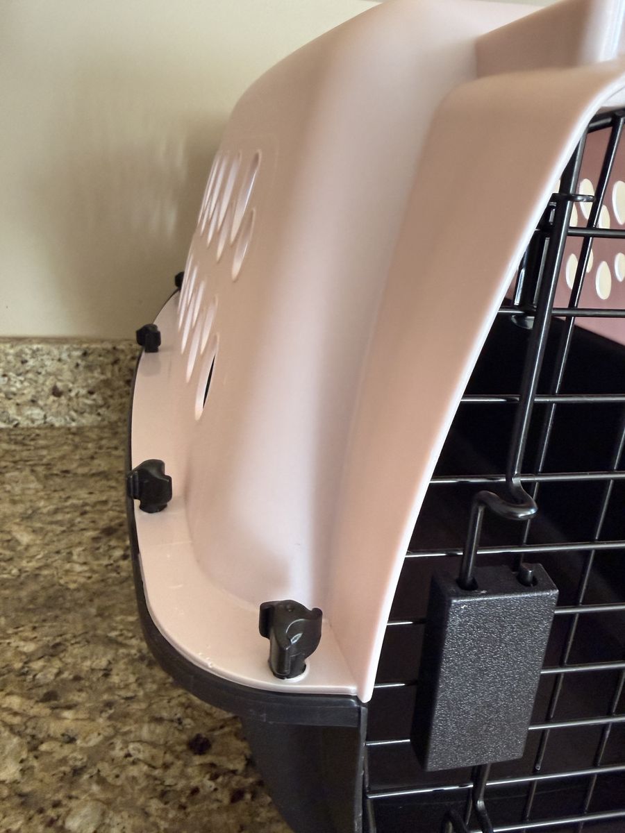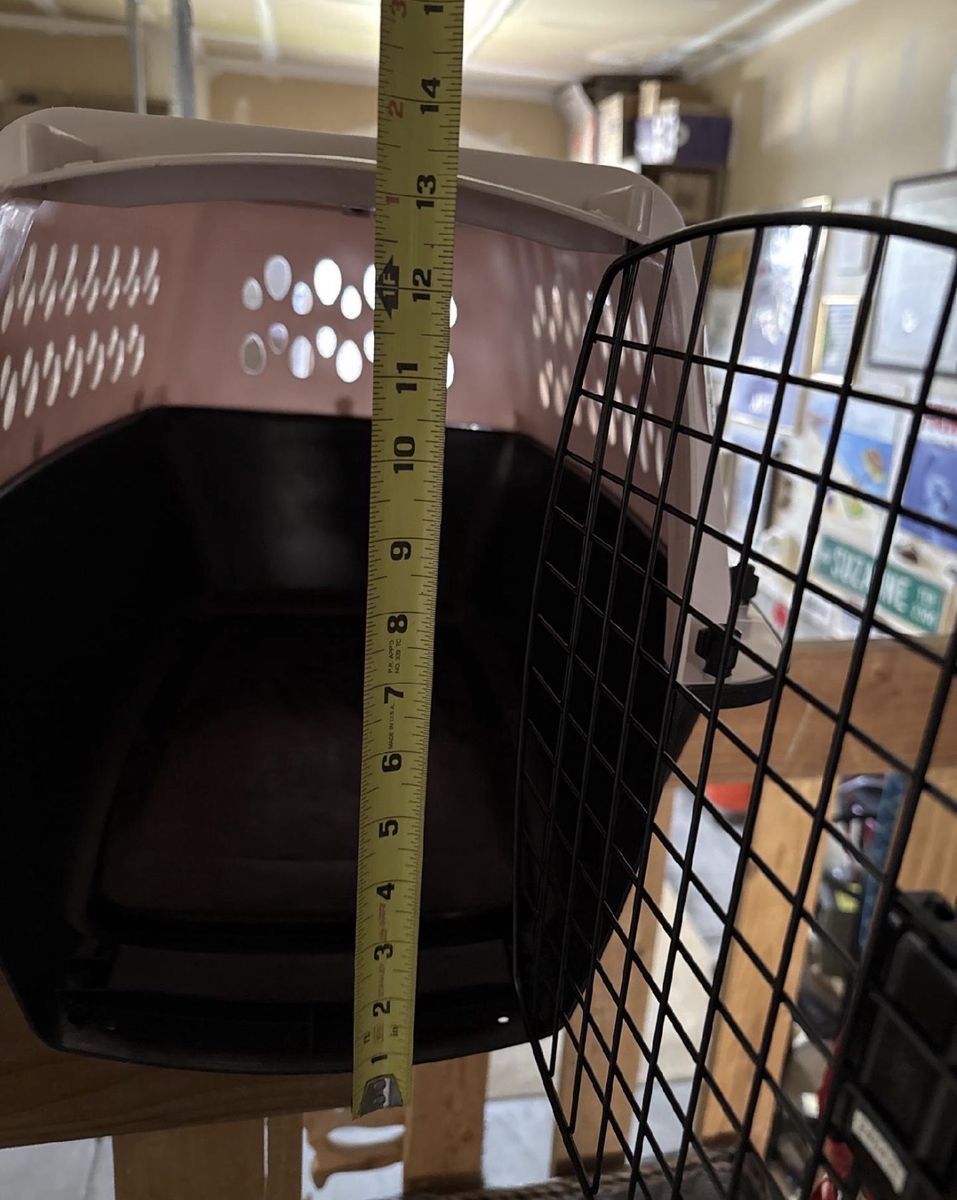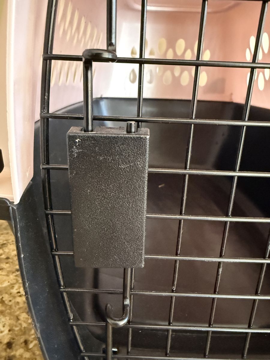 Gently used pet carrier with metal door. Clean and in great condition. Perfect for cats or small dogs.