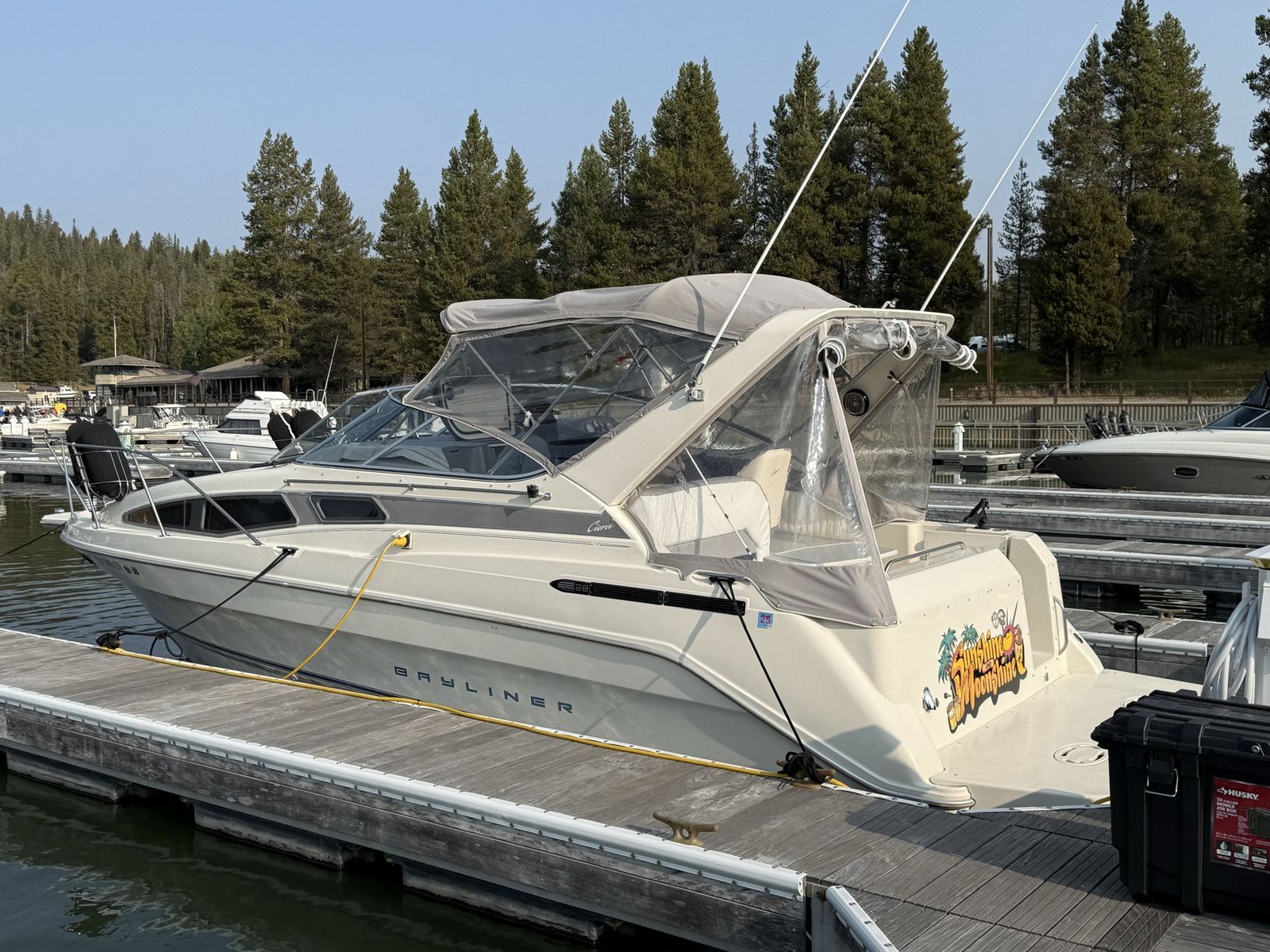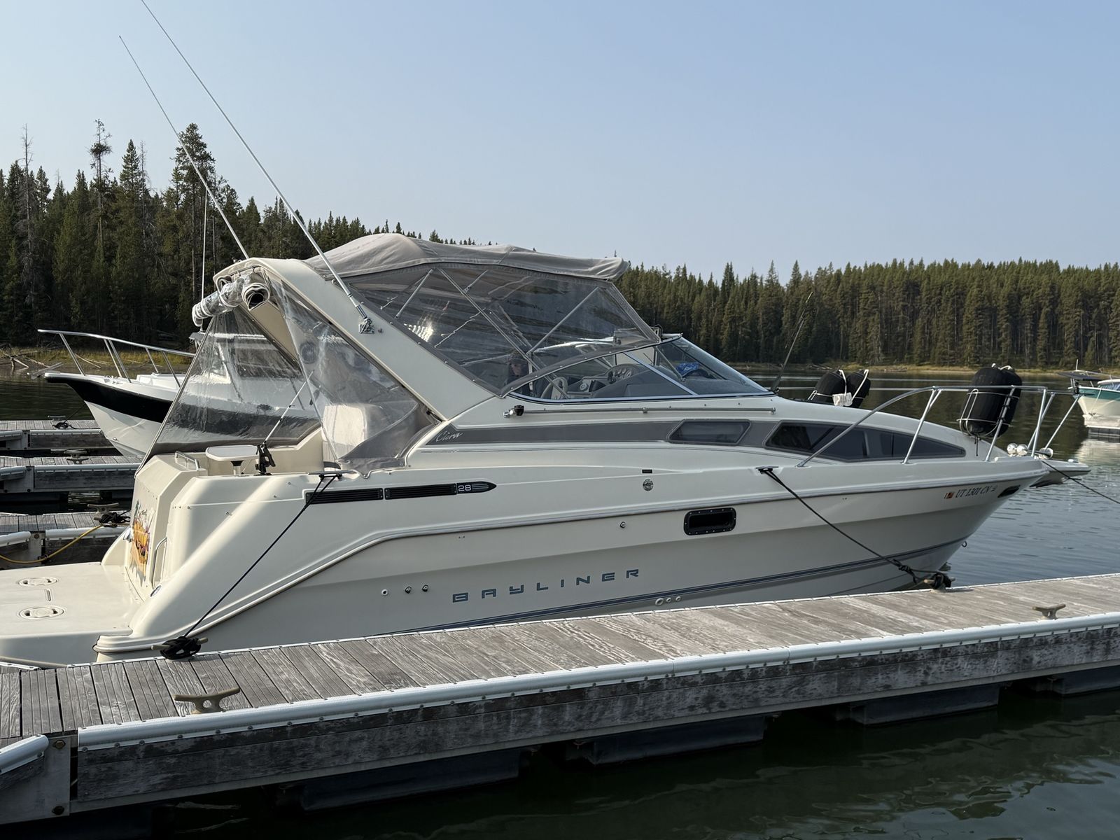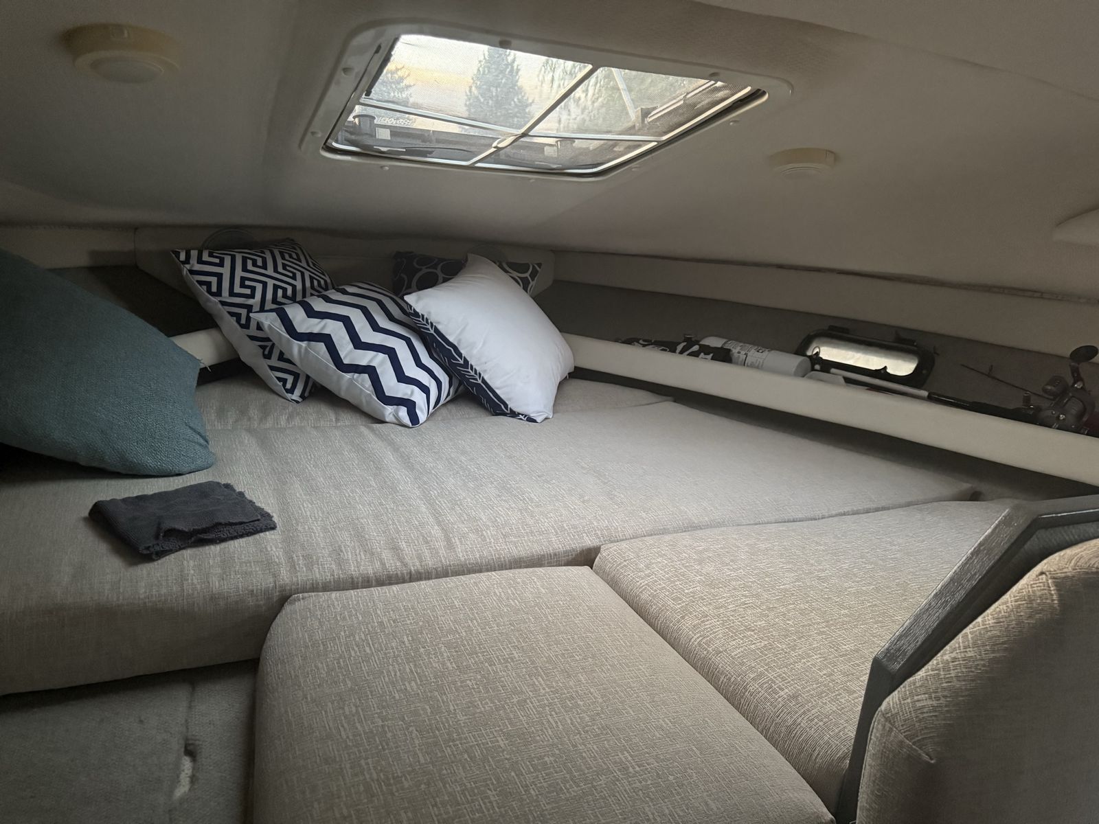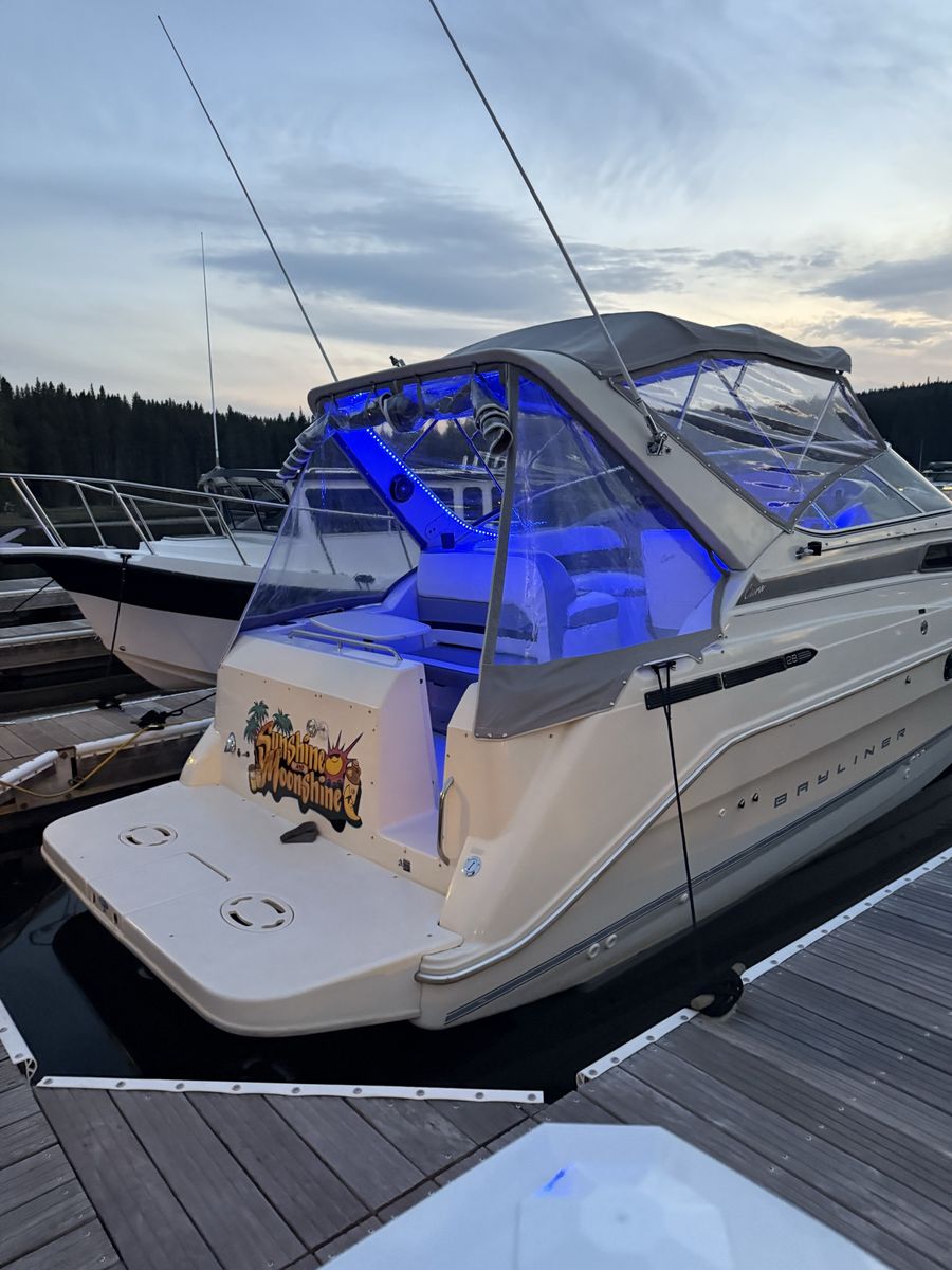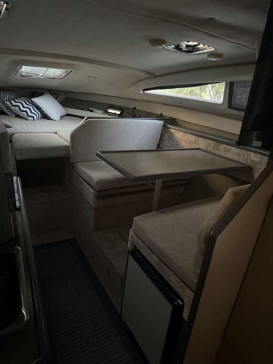 ApplePayHas low hours motor runs great had to replace fuel pump last season but other than that she’s been great we just upgraded and have no need she sleeps 6-8 comfortably shower- bathroom hot water all the things are working just great Propulsion & Performance • Engine: MerCruiser 7.4L V8 inboard (gasoline) • Power: ~330–340 hp depending on configuration • Drive Type: Inboard / sterndrive • Cruising & Top Speeds: Typical 30 to 35