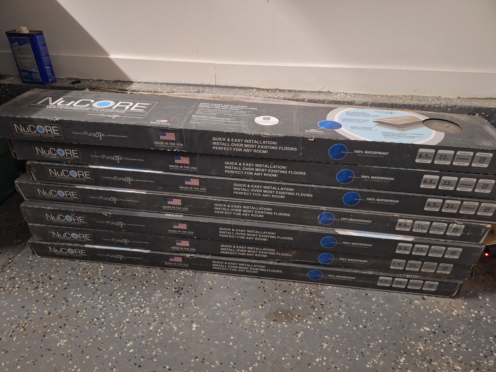 7 boxes of brand new LVP flooring. Aprox 160 sq ft total (23 sq ft per box) Enough for an average size room.