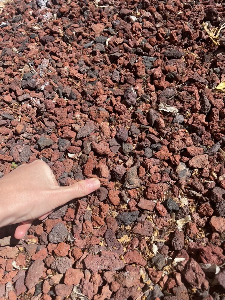 Red lava rock and thumb-sized gray gravel.