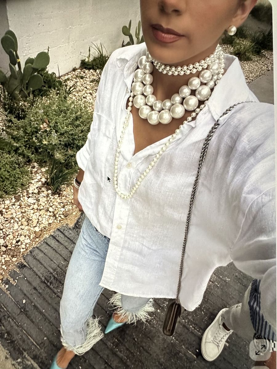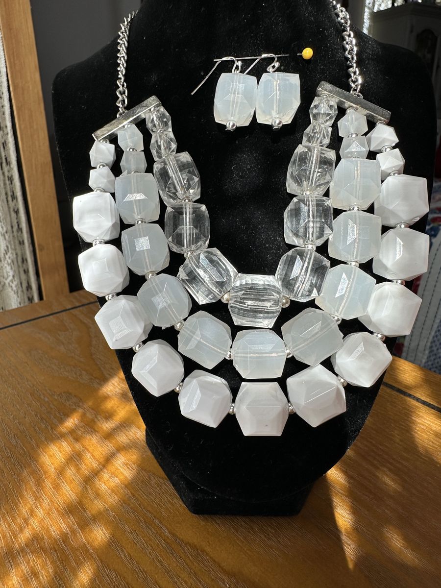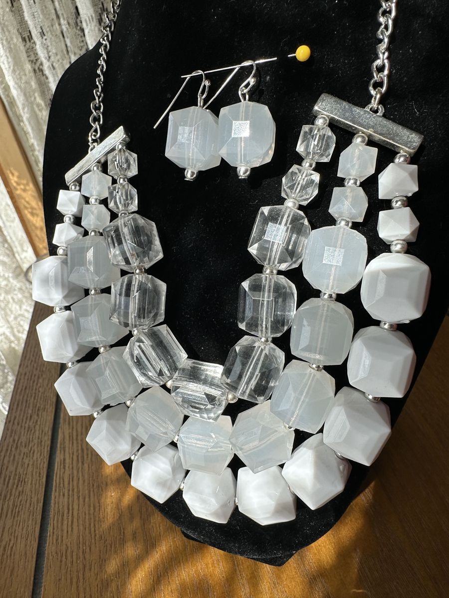 VenmoThe perfect piece to dress up a casual look. Perfect with a white summer dress or crisp white shirt and jeans. Three strands graduating from clear to white.