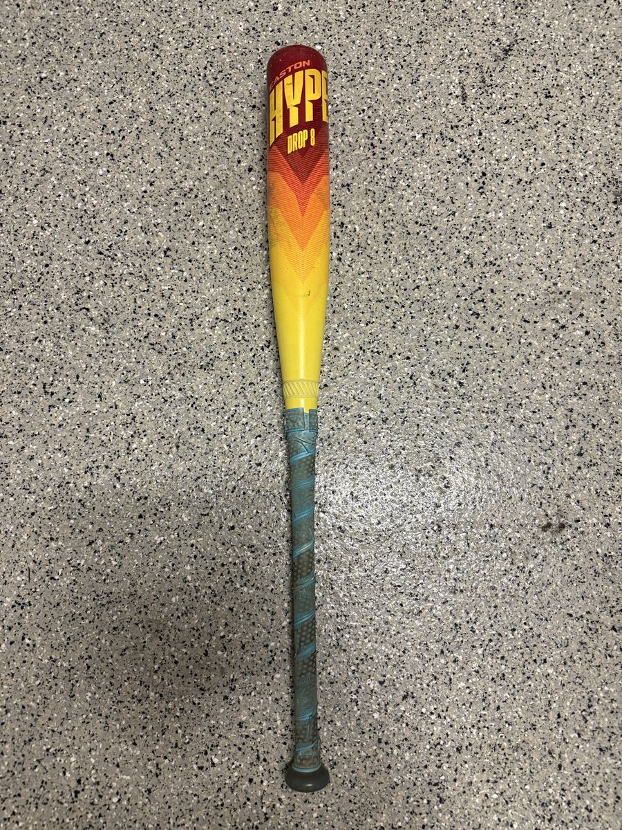 ApplePay2023 Easton Hype Fire 30/22 -8 This bat has been used in 1 spring season by a 12u player, about 25 games. No cracks, chips, or breaks. Marks from the ball, no performance decrease purely cosmetic. Already broken in and comes with a .5 lizard skin blue grip.