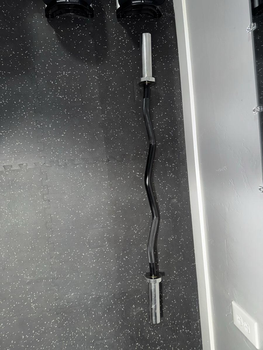 ZelleThis home gym fit in our 8x10 spare room. The squat rack is 71” tall so it’s perfect for a low ceiling. Weights not included