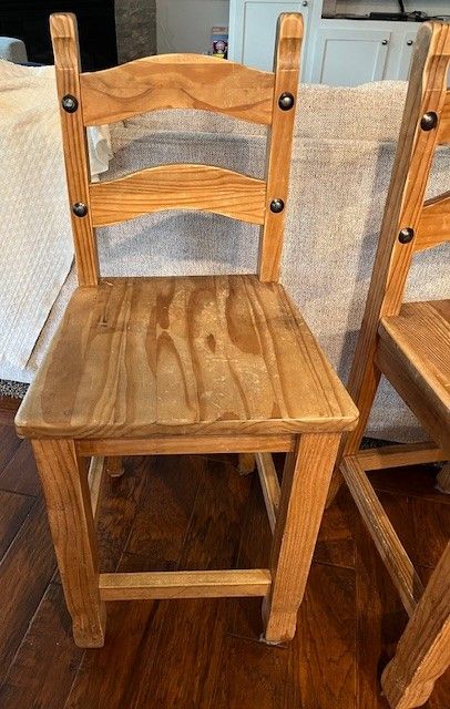 VenmoSolid wood bar stools/chairs that are in good condition, but would most likely need to be refinished and some minor fixing for support. Can be sanded and restained, painted, etc. to match your decor.