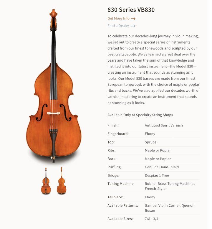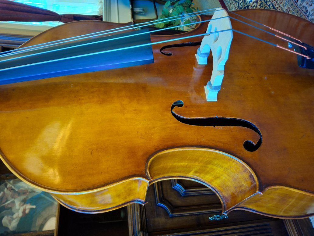 Used, like-new bass. Maple body. Ebony tailpiece. A beutiful intrustment. Comes with the soft cover pictured. Normally $11,000. Our price is $7,500 for instrusment and case.