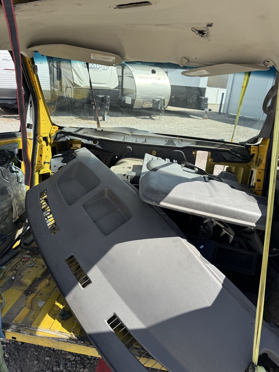 Missing the dash, seats, mirrors, wiring harness, brake parts, front grill, hood, radiators, etc