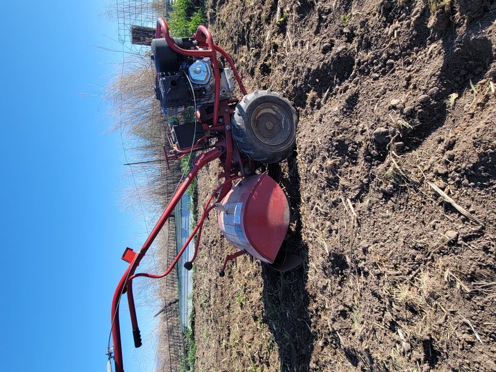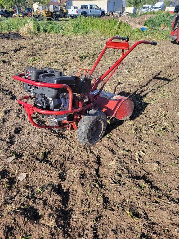 Venmotiller has a brand new 10hp Briggs engine. this machine works great and has tons of power.the electric starter system does not work anymore but engine starts on first pull.