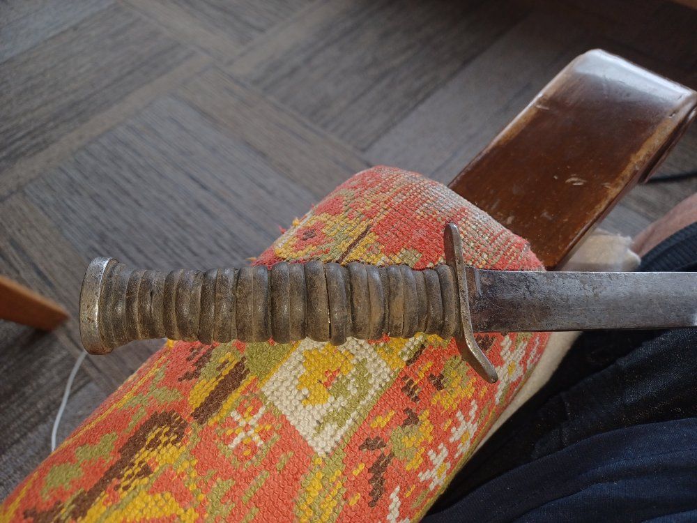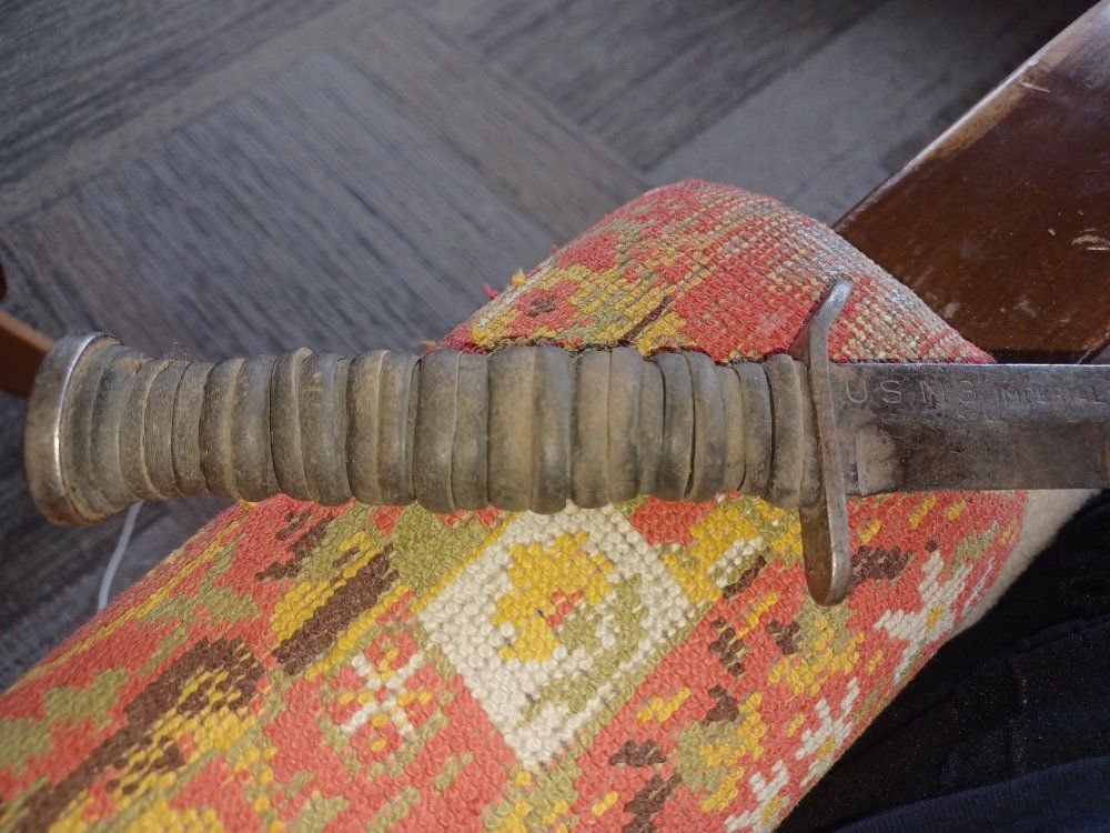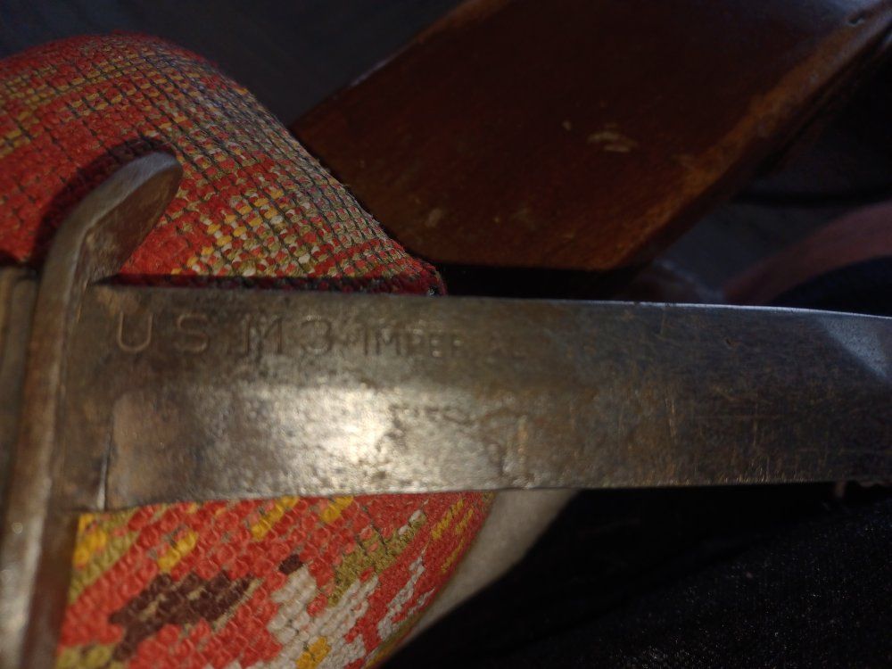 From WW2 US M3 Imperial trench knife, in good shape, the handle leather has shrunk and needs sharpenning.sharpening. very collectable.