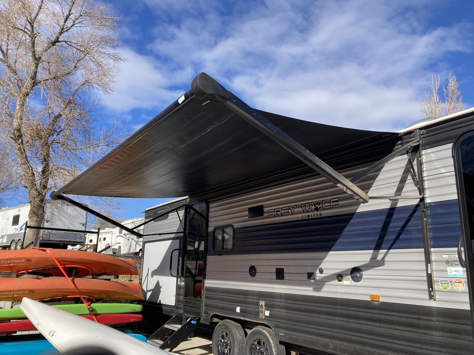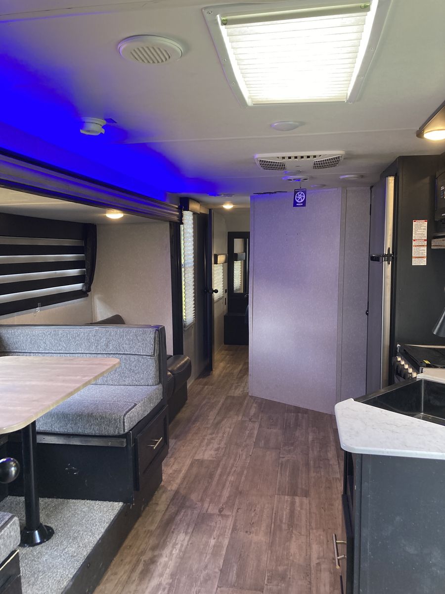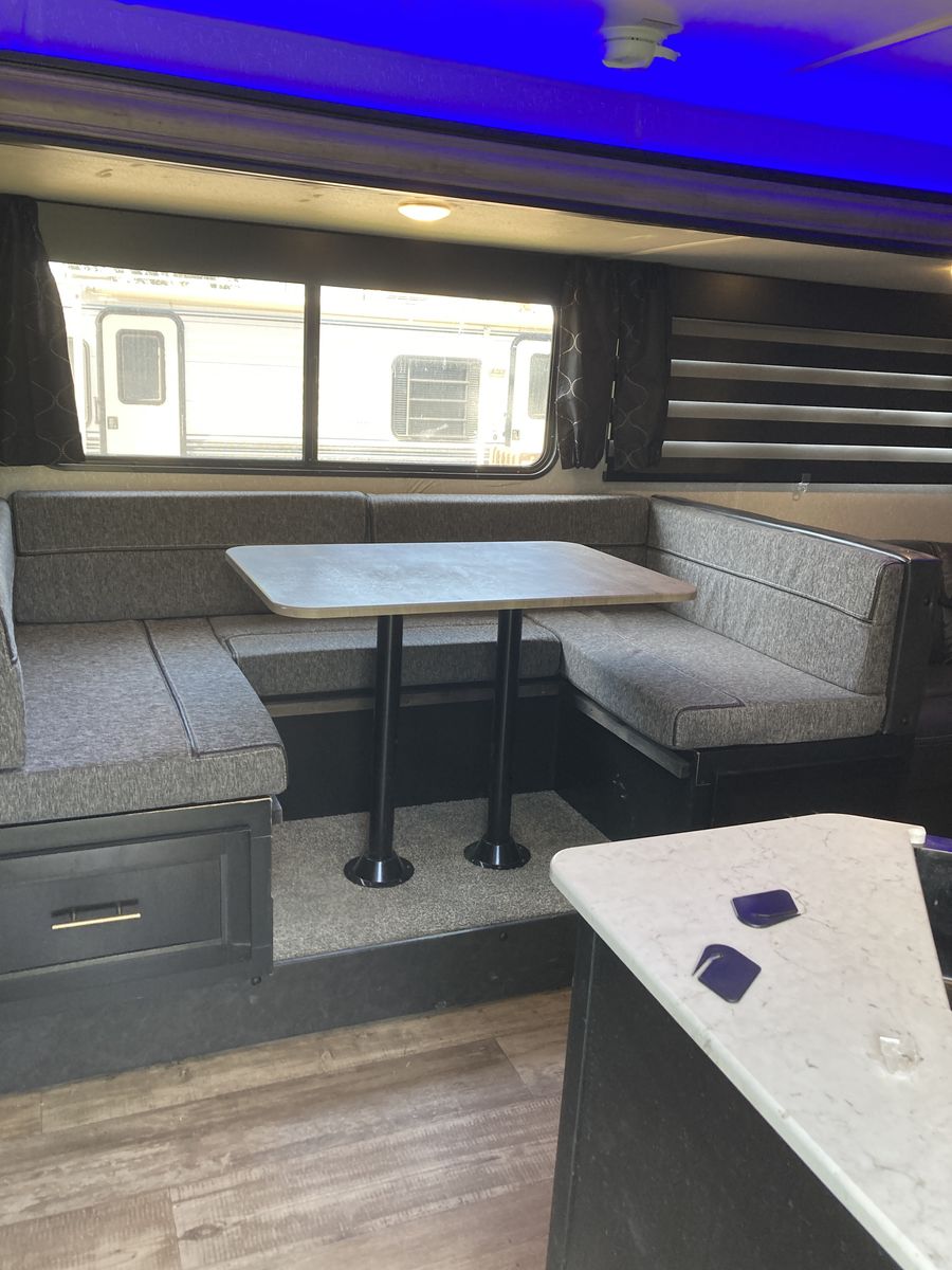 Fantastic spacious bunkhouse camper with a big 2nd kitchen outside. Minimal use. Comes with brand new dinette cushions and bunk bed mattresses. They were gone when we bought it.