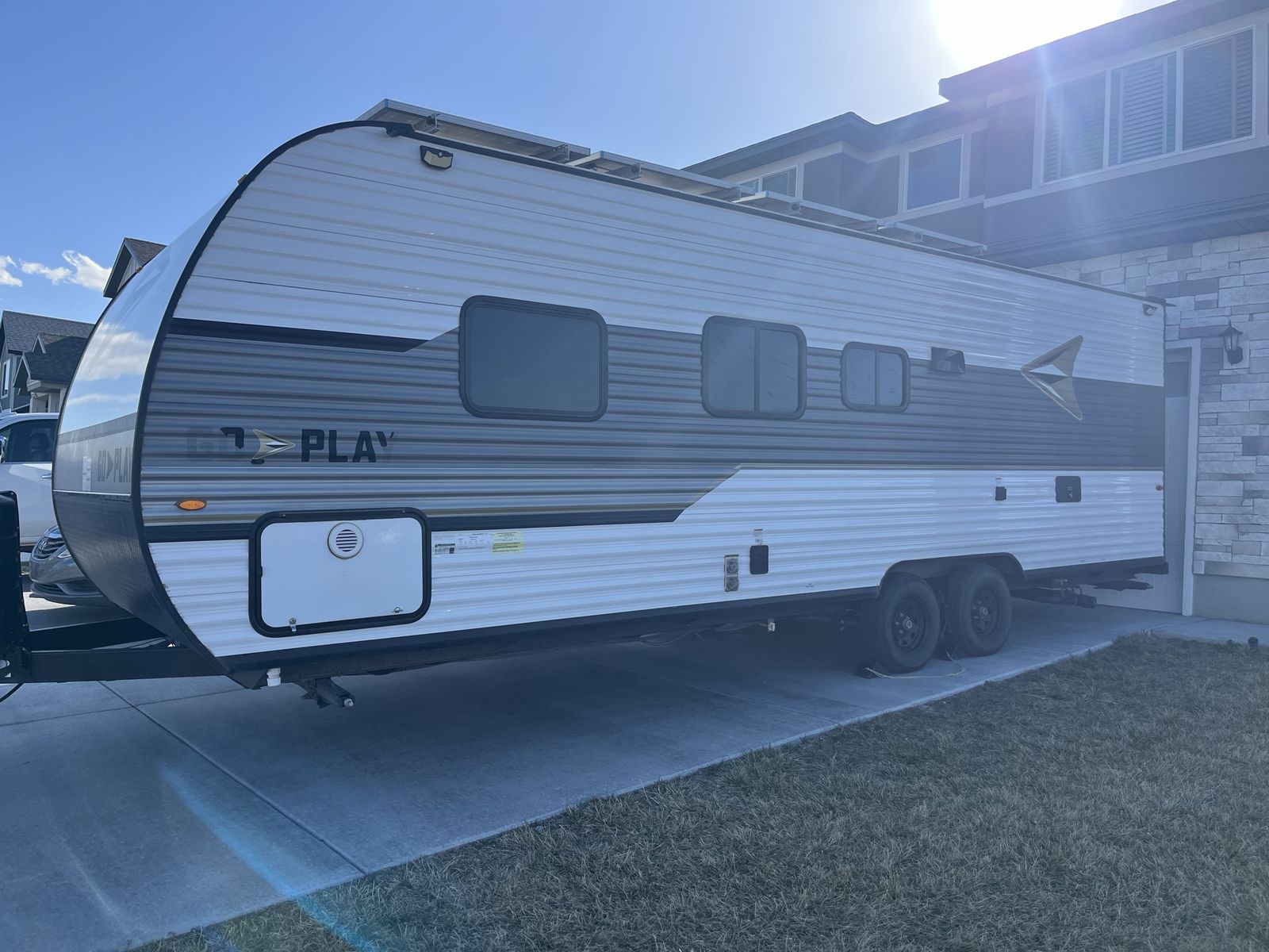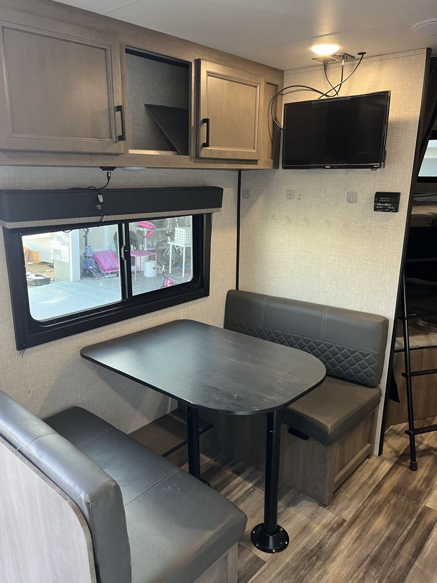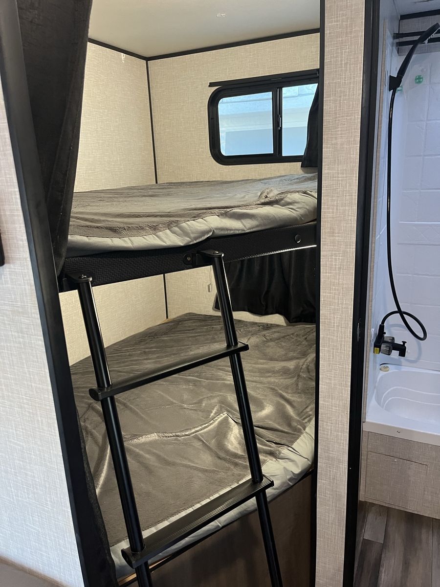 Selling our 2023 Wayfinder Go Play 26 ft bunkhouse trailer – fully off-grid capable. We bought it brand new and added $10,000 in solar, batteries, and supporting equipment. The trailer sleeps 6 comfortably and can accommodate up to 8. It has been used for multiple extended off-grid trips without ever needing fuel, hookups, or the generator. Power setup includes 800 watts of roof-mounted solar panels feeding 600 amp hours of batteries (7,200 watt-hours of usable power). A 2000-watt inverter powers all standard outlets, lights, and utilities directly from the batteries. It can even run the air conditioner when needed. Starlink connects reliably and runs 24/7 with no issues. We’ve never had to plug in or start the generator on any trip. It comes with a Champion generator as backup. There’s plenty of storage throughout, with bunk beds that have good headroom and clearance. The dinette and couch both convert into additional beds. We installed a whole-house water filter, so water from all faucets and the shower is drinkable. If you want a trailer you can park just about anywhere and meet your everyday needs without running a loud generator, this one is set up and proven to do exactly that.