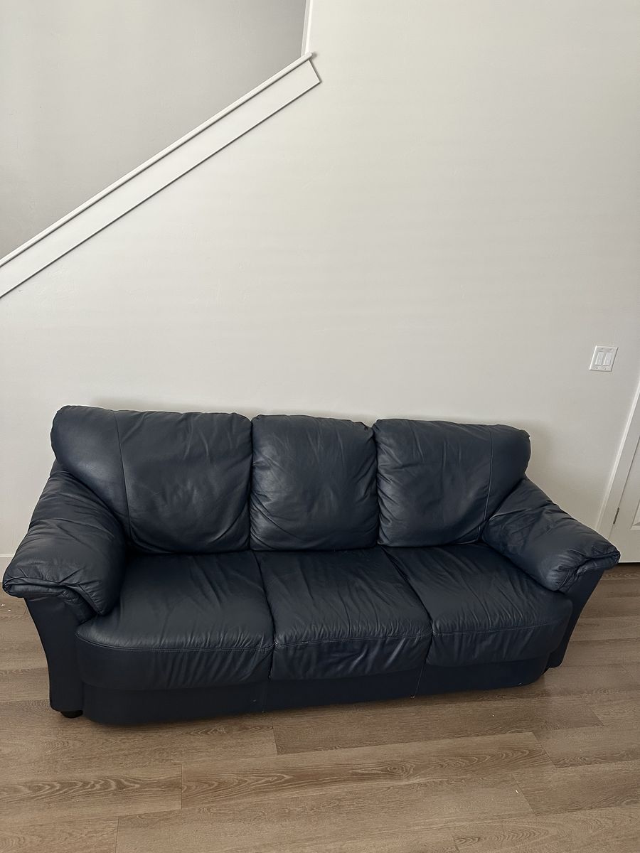 ApplePayBlue leather couch for sale. It’s been used but is in good condition! It is just under 7 feet long. Pick up and Venmo only. I’m flexible on price!