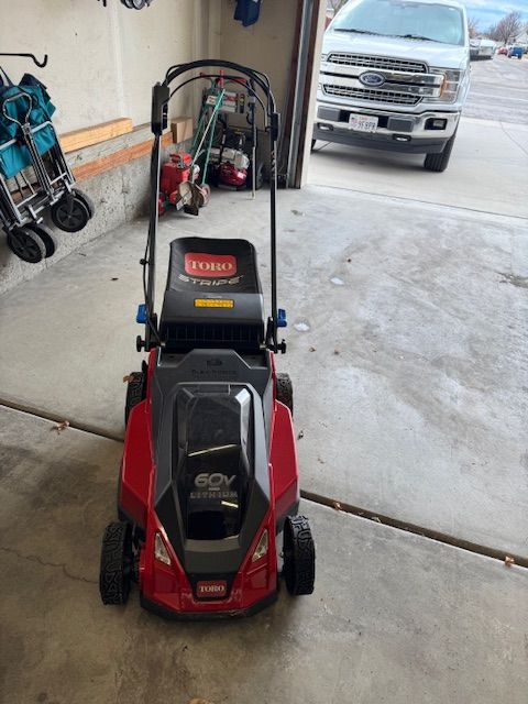 VenmoToro Model 21623 lawnmower. Two years old, only used 10-12 times. Comes with charger and battery.