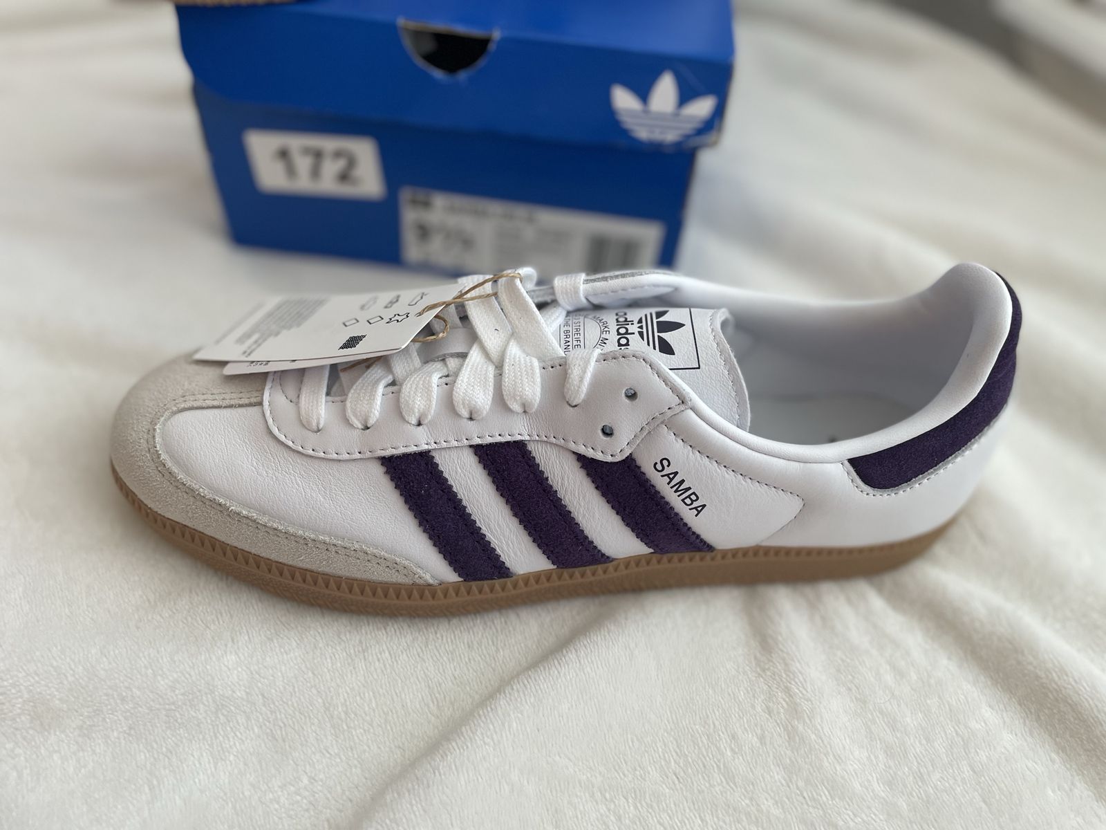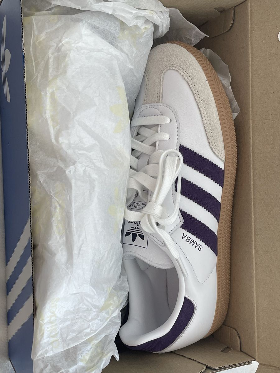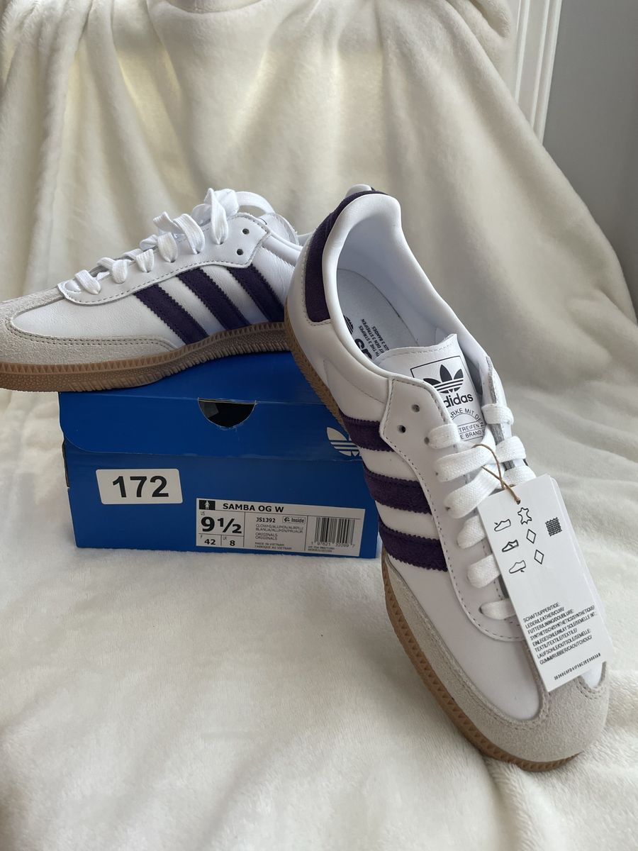 VenmoNew women’s Adidas Sambas size 9 1/2. Brand new in box. Color is a deep dark violet.