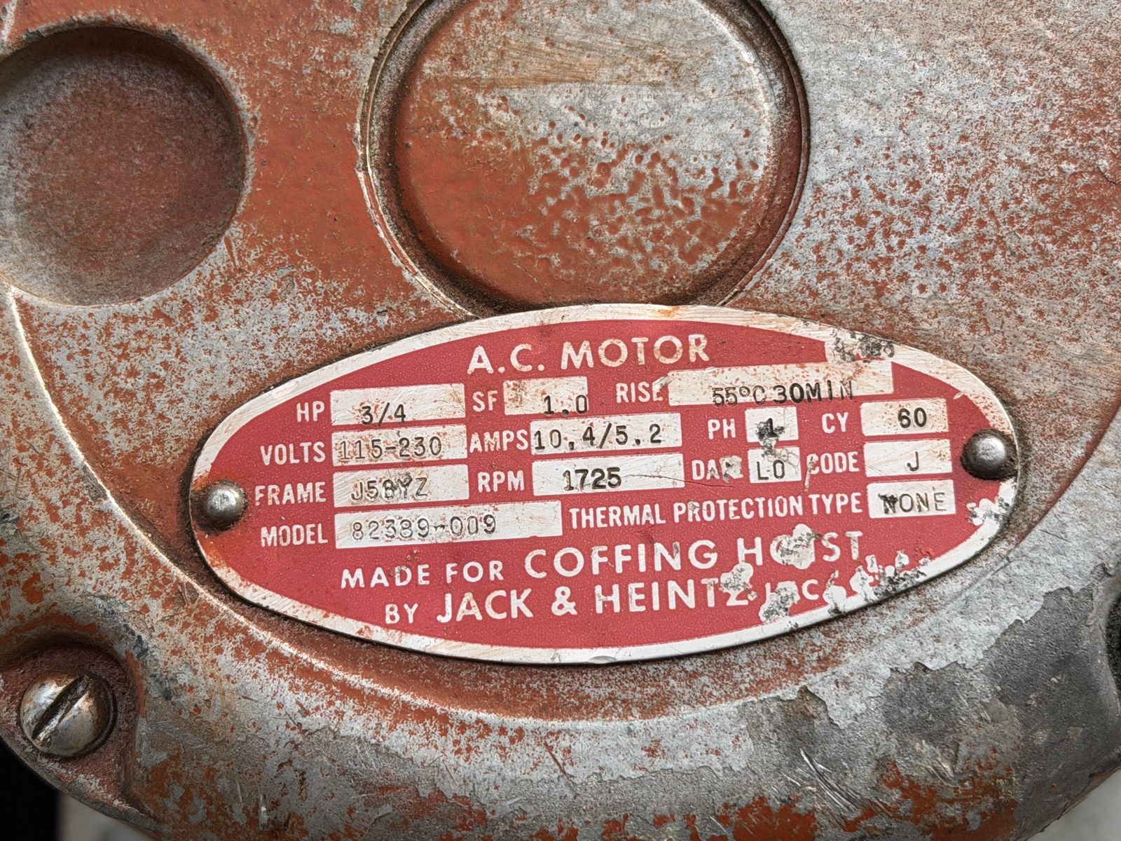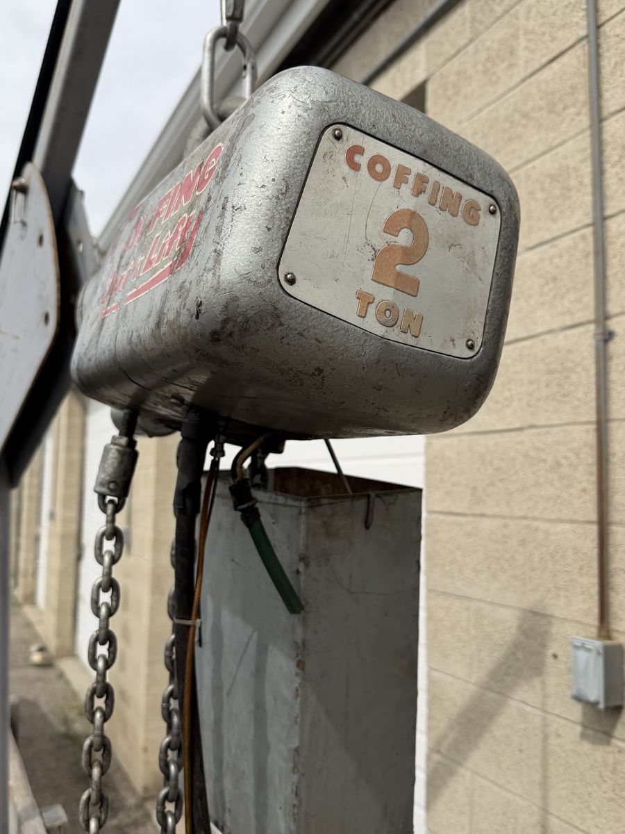 VenmoCoffing 2 Ton Chain Hoist Single phase, 115v or 230v Older model but works well.