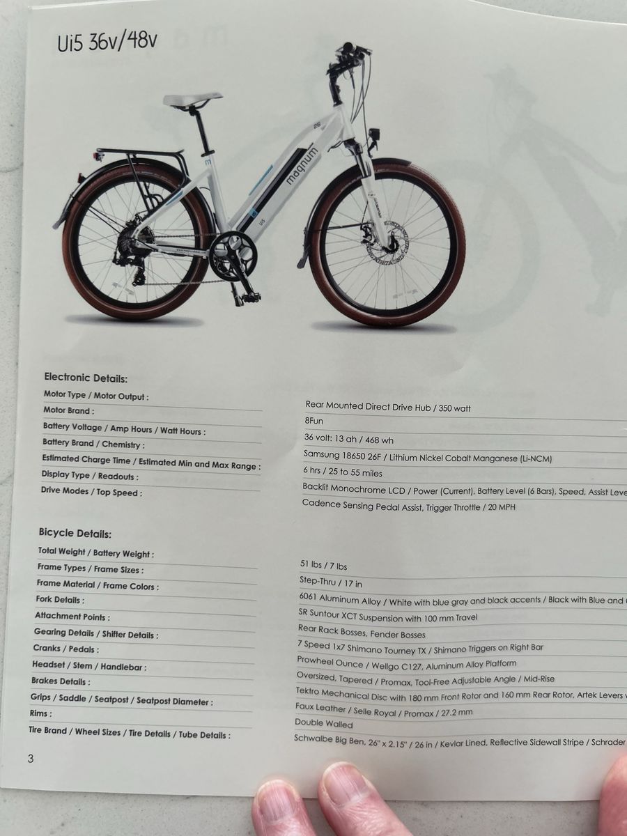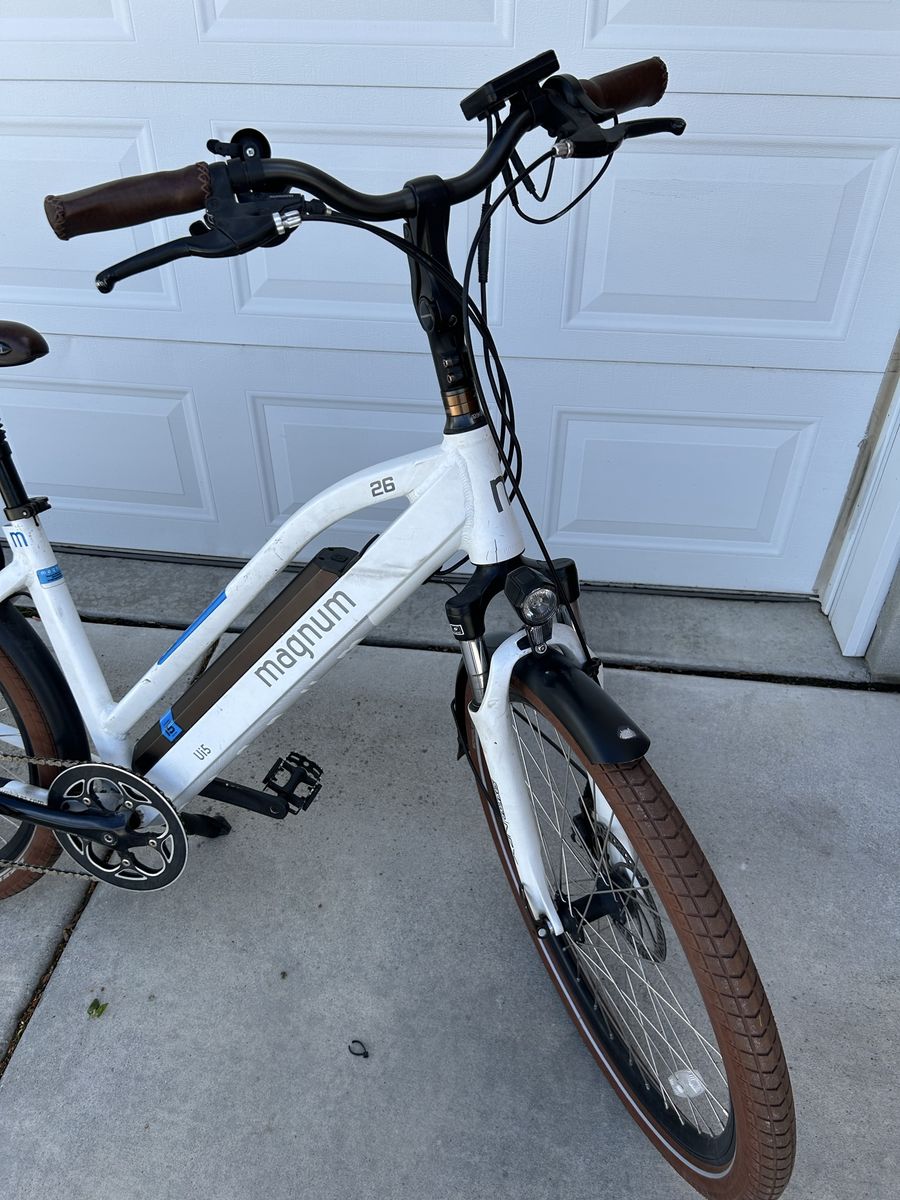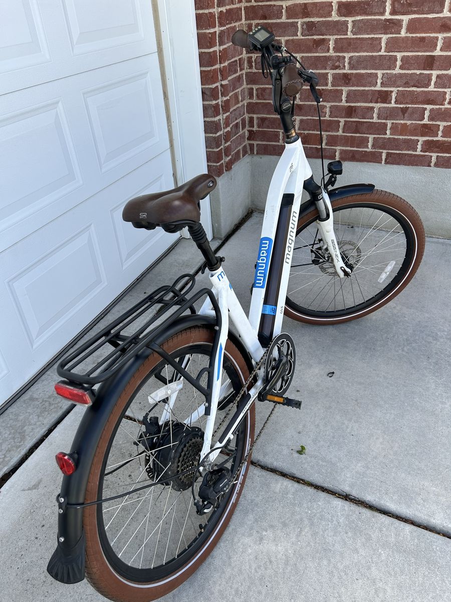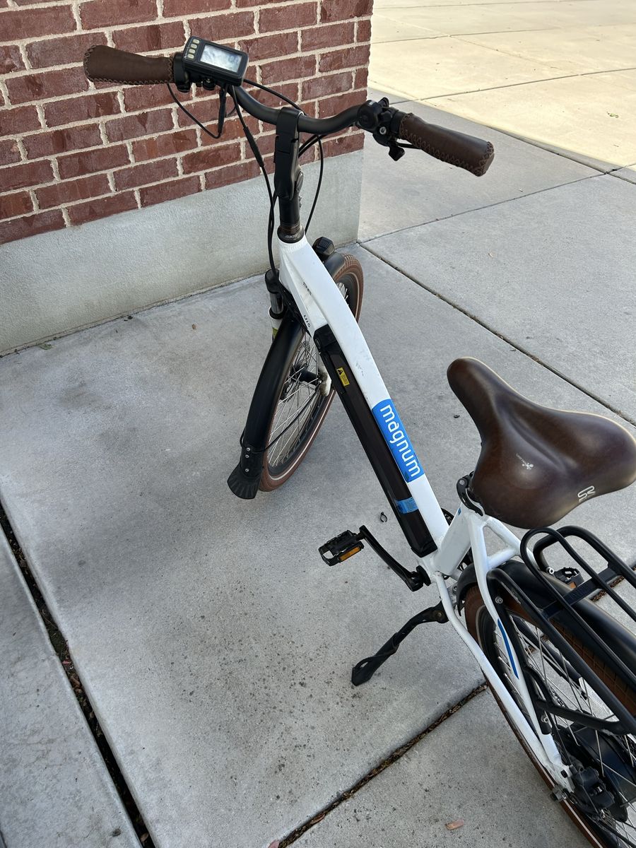 Selling my Magnum Ui5 step-thru electric bike. Super comfortable with upgraded padded bike seat. Bike rides great and is ready to go, no issues, only ridden 200ish miles over its lifetime.