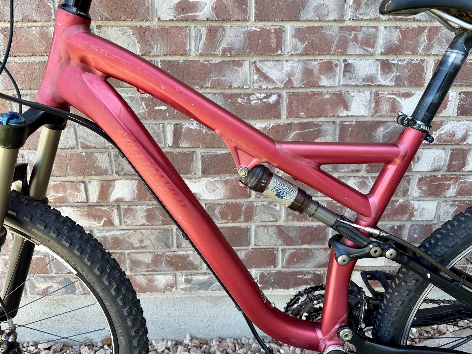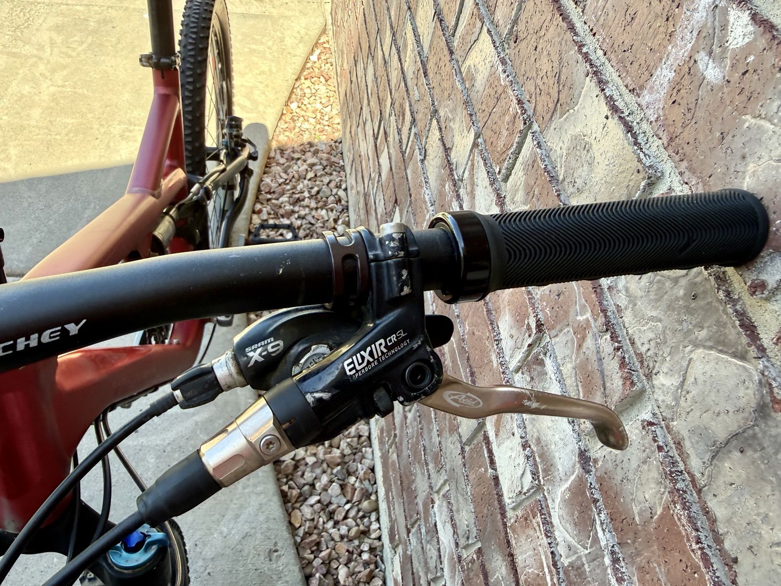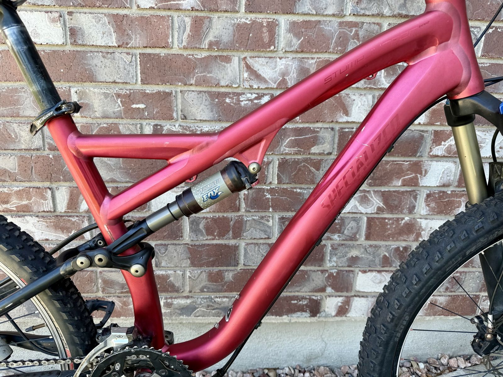 -Full specs online. -Aluminum frame. -SRAM X-9 rear derailleur. -SRAM X-9 shifters. -Shimano SLX front derailleur. -Custom Avid Elixir CR SL hydraulic disk brakes. -Fox Talas RL, 140 travel suspension fork with AFR Brain Shock w/ remote Trail Tune inertia valve and Brain Fade w/ lockout. -Specialized lock-on grips. -Flat MTB pedals.