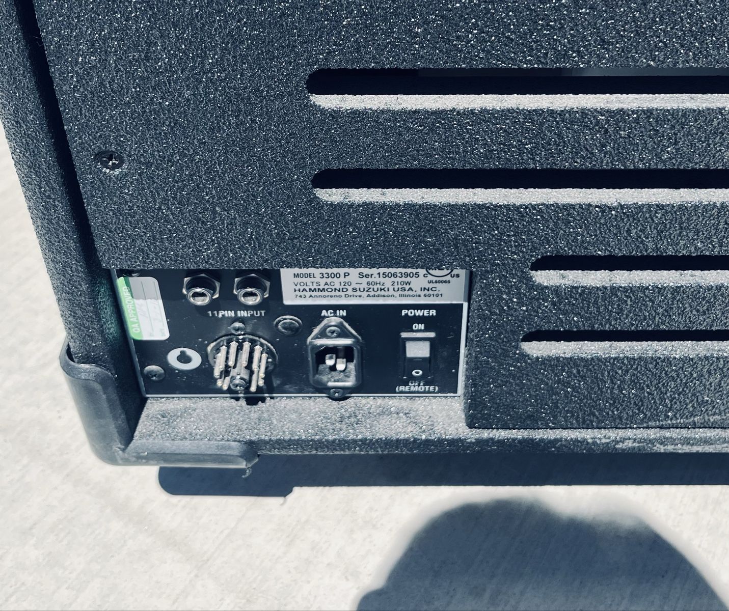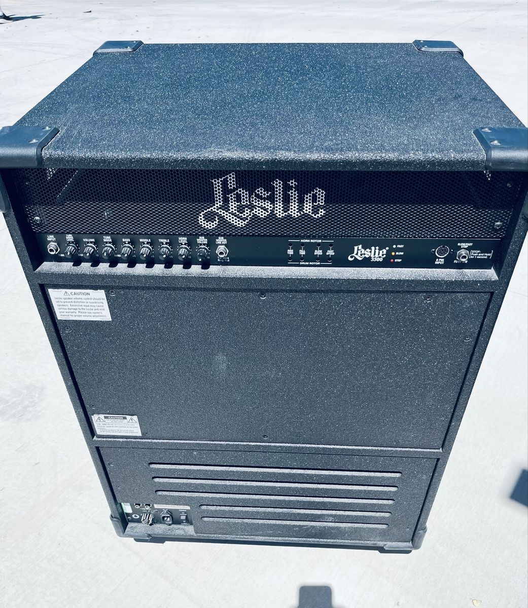 300W bi-amplified keyboard speaker cabinet Road-ready cabinet with rugged textured finish Spring-loaded handles, corner protectors, and heavy-duty casters Rotating 15-in. woofer and high-compression horn driver 11-pin and 1/4-in. line-level inputs 11-pin power remote switch Adjustable Rotor speeds Overdrive circuit with on/off switch and Gain control 3-band EQ; Bass Out terminal with lowpass adjustment Stationary output Standard footswitch for Leslie speed. - not included.
