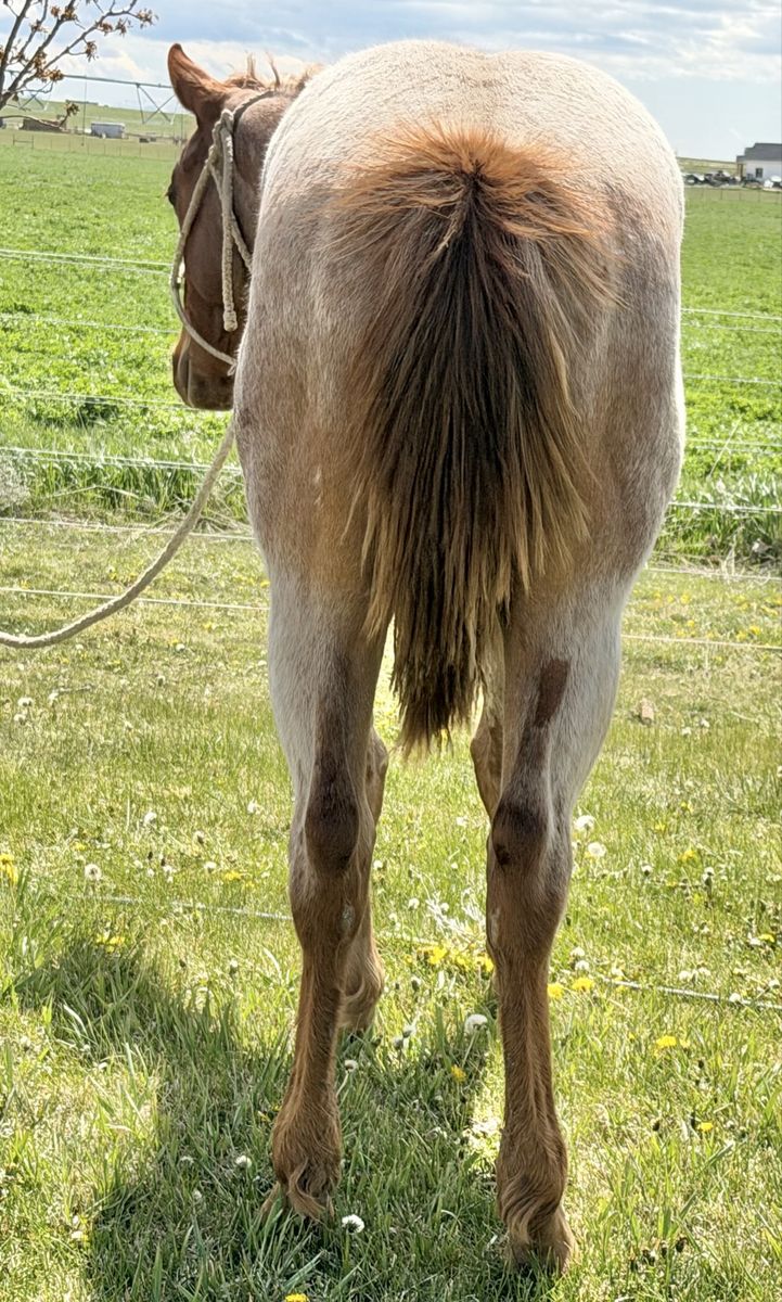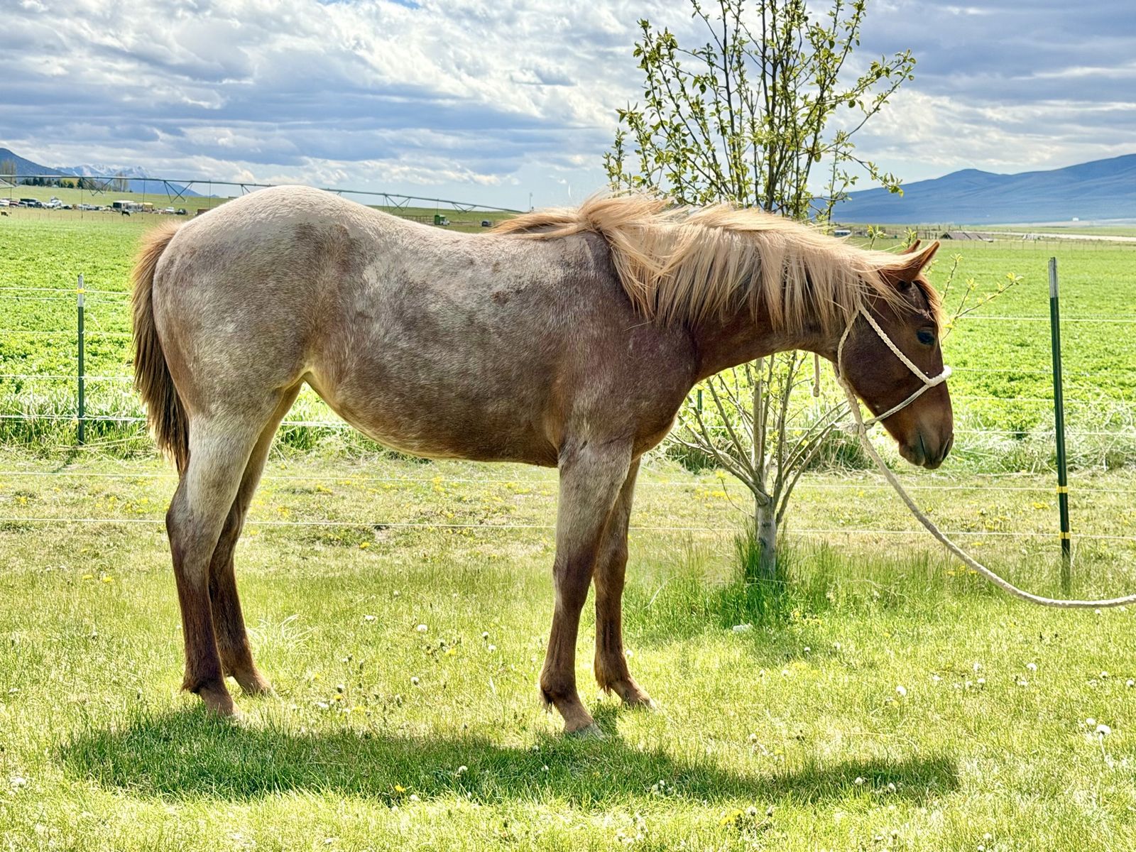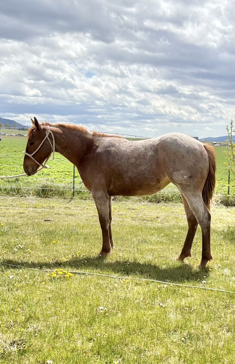 2025 AQHA Red Roan filly, she is the sweetest girl ever and athletic too! She has great bloodlines to back up her beauty and personality willing to learn! She’s been handled, easy to catch, ties, loads and hauls good! Good feet and legs. She would be a great prospect for roping of any kind or general ranch work. But she has the potential for anything! You won’t be disappointed! See Less