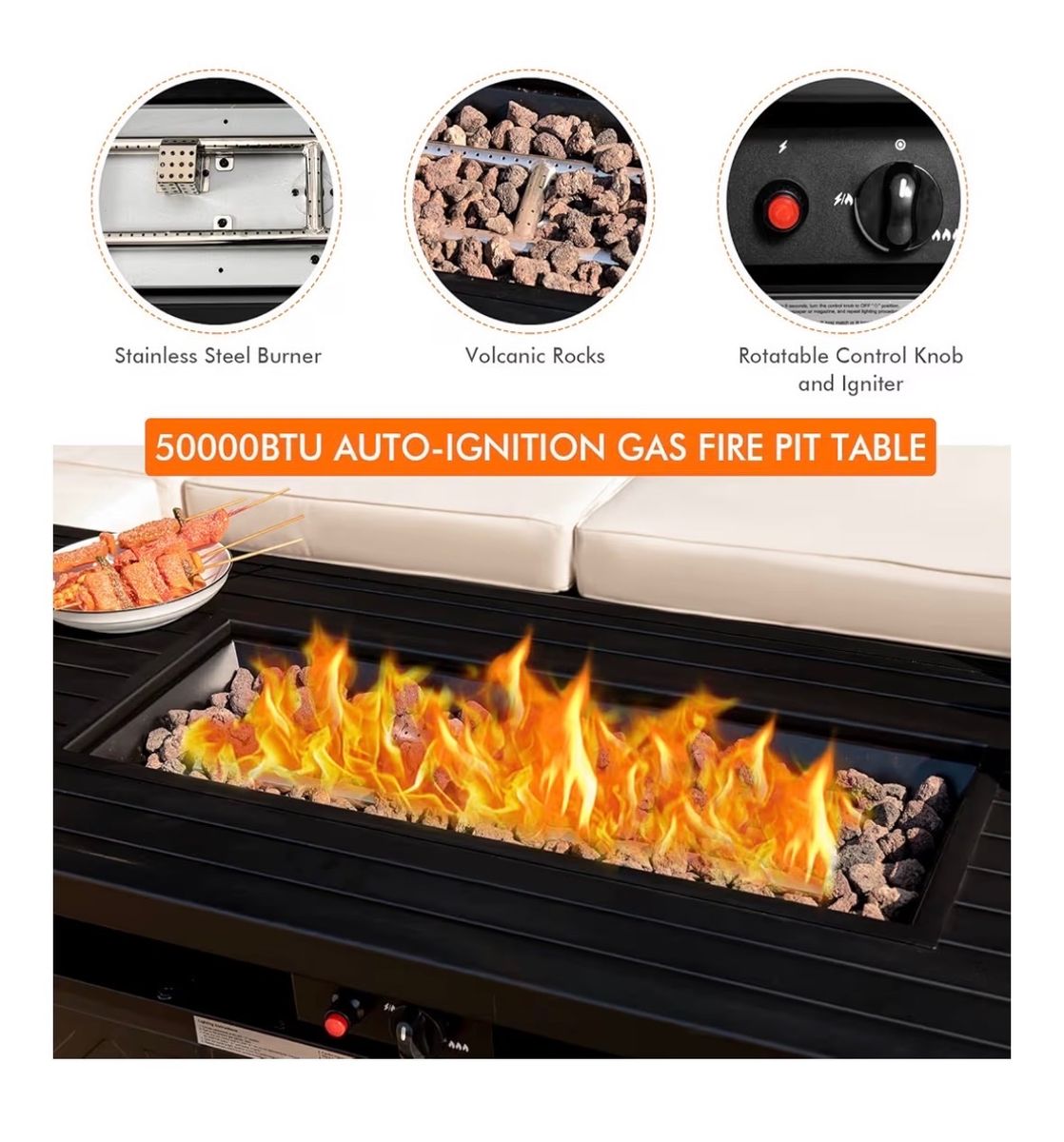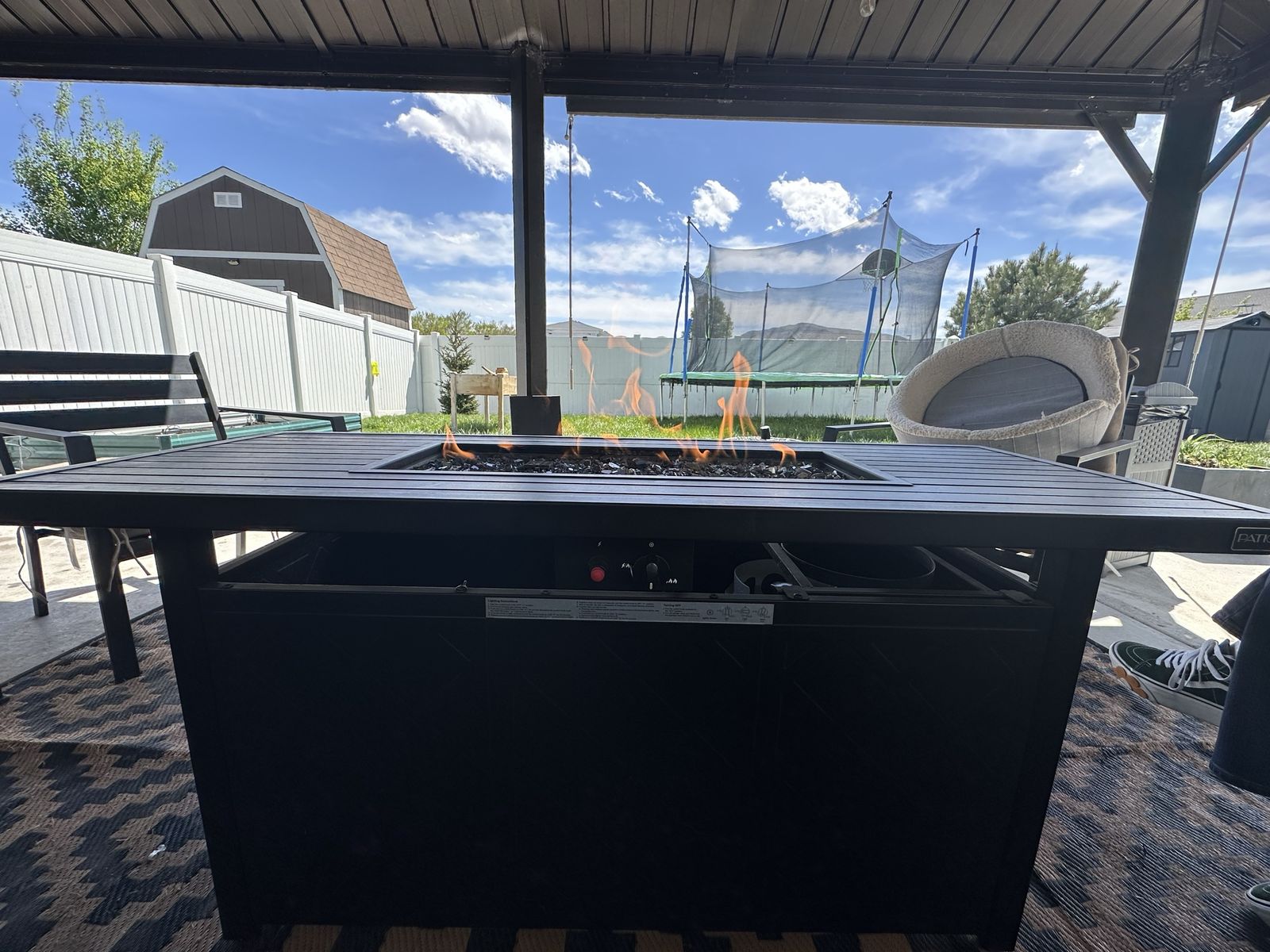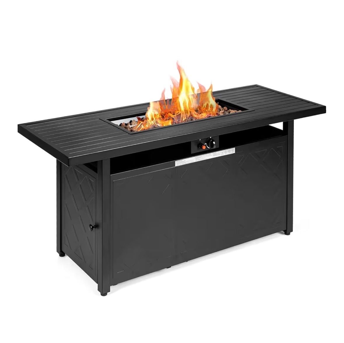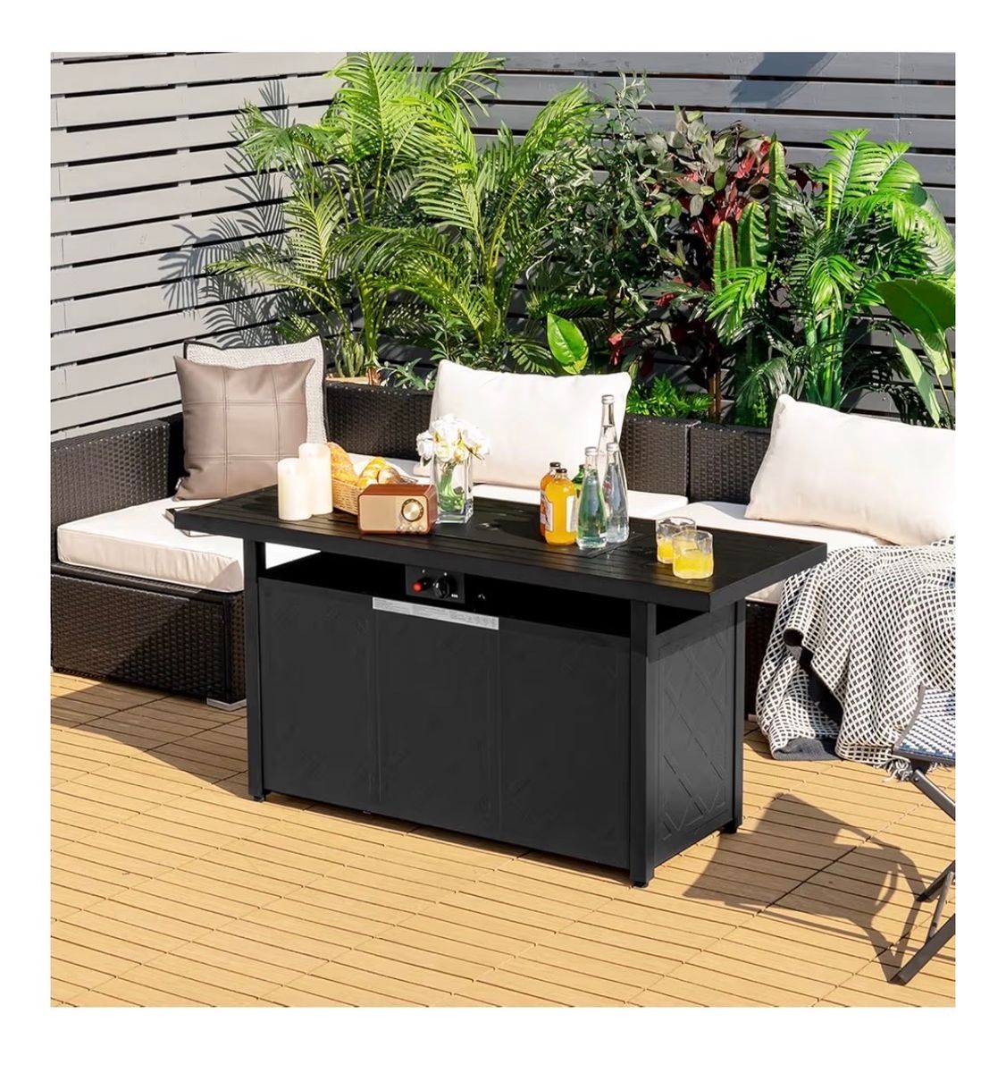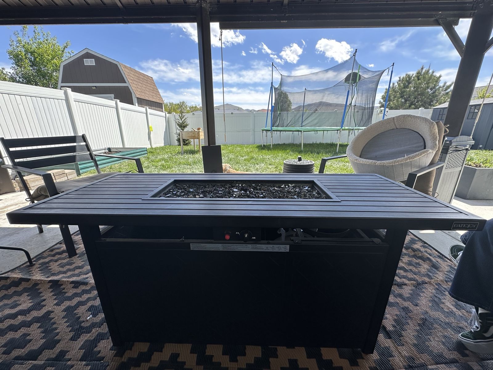 CashAppPATIOJOY Fire pit/table ran with propane. In good condition and kept under an awning entire time. Still gets dirty and wet at times but rarely. No problems with it, works as seen in pics. Door opens and latches shut with no problems. Could store items beneath behind propane tank if wanted. 2 people needed to lift and move.